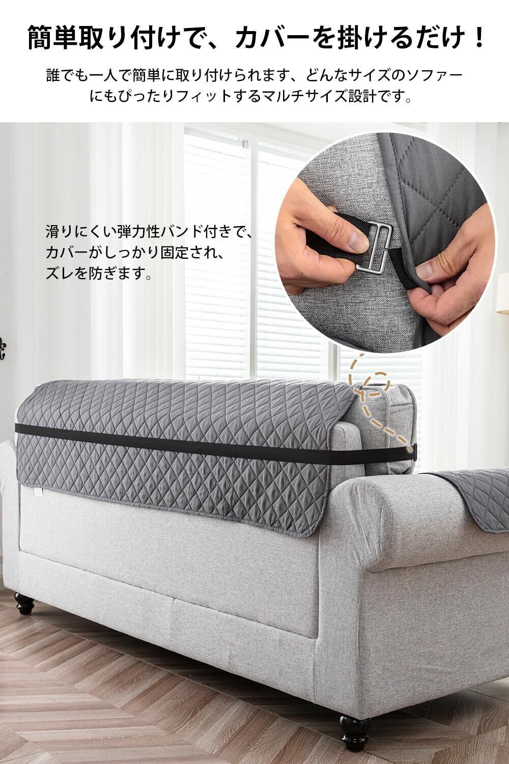 「ズレにくい設計」裏面の滑り止め加工と側面の固定バンドが組み合わさっているから、カソファーバーのズレ知らず!子供やペットが動き回っても、カバーがズレる心配はありません。