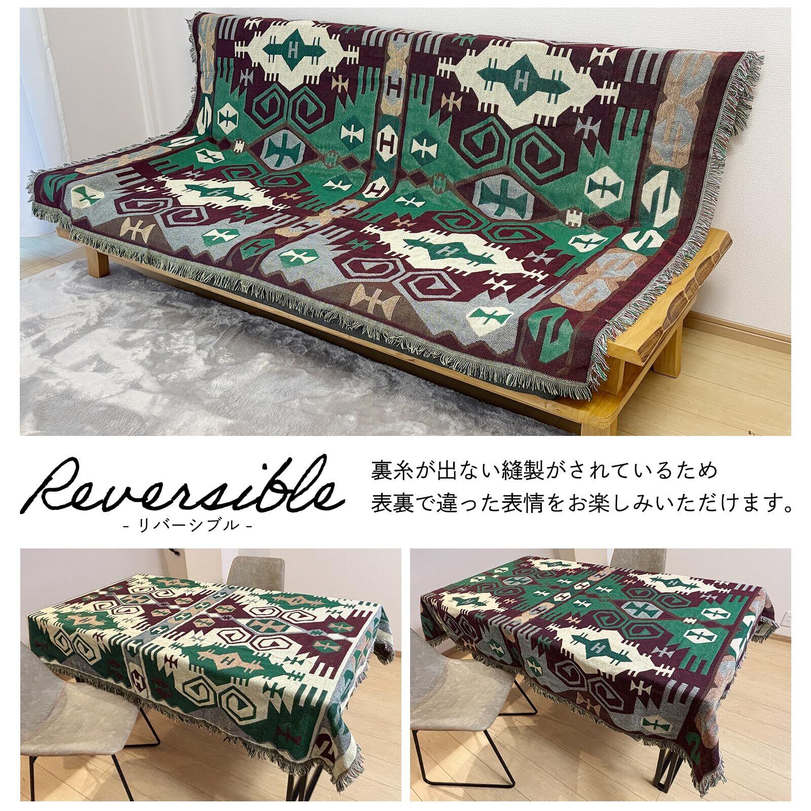 テーブルクロスやホットカーペットカバーとしても活躍し、リビングや寝室に温かみを加えます。シーズンごとの模様替えにも最適で、一枚敷くだけで空間の印象を変えることができます。多目的に使えるため、インテリアを自由にアレンジしたい方におすすめです。
