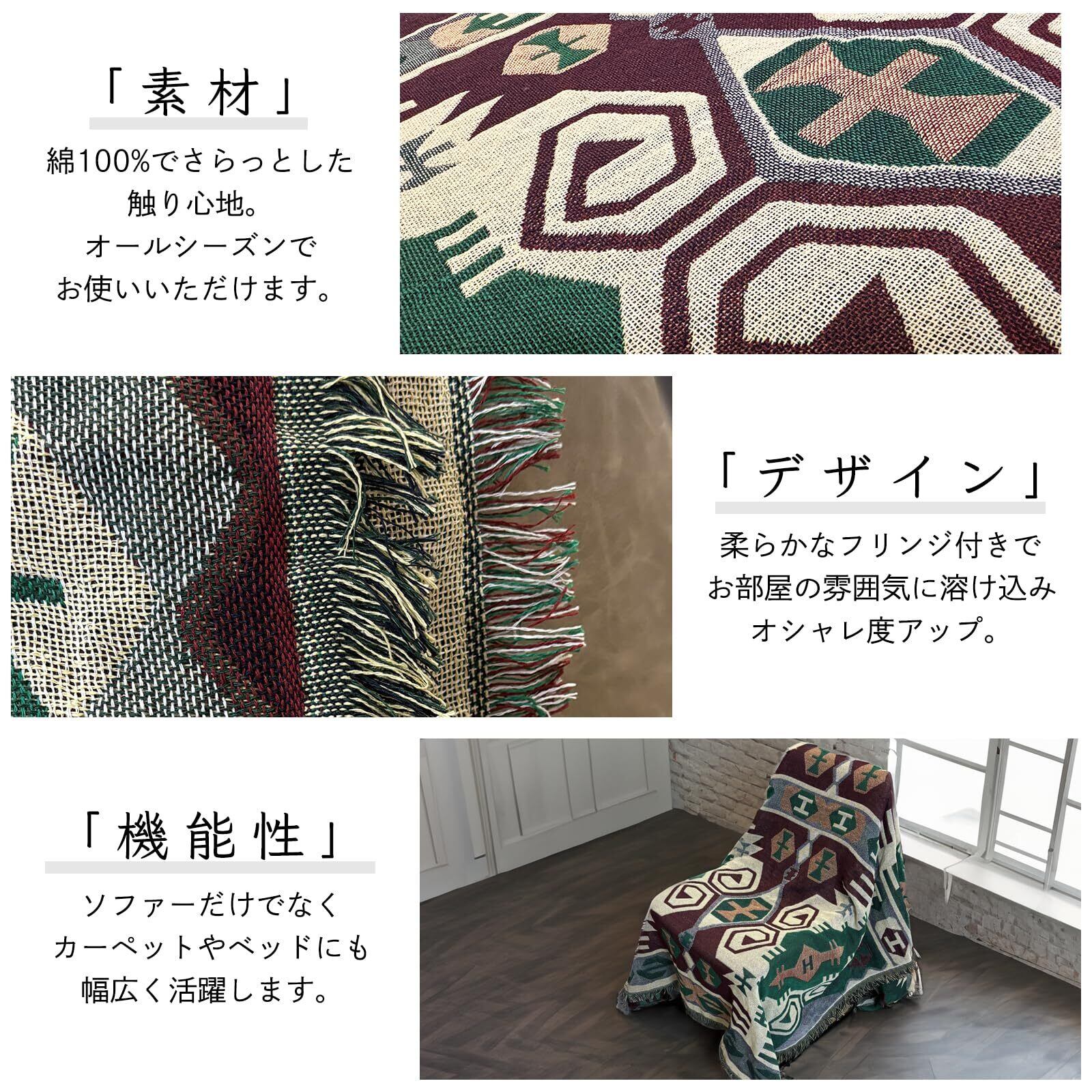 コットン100%の自然な風合いが魅力で、肌に優しく快適な使い心地を提供します。2人掛けのソファーカバーやこたつ布団の掛けカバーとしてもぴったりで、さまざまな場面で活躍します。おしゃれなデザインなので、ギフトやプレゼントとしても喜ばれるアイテムです。