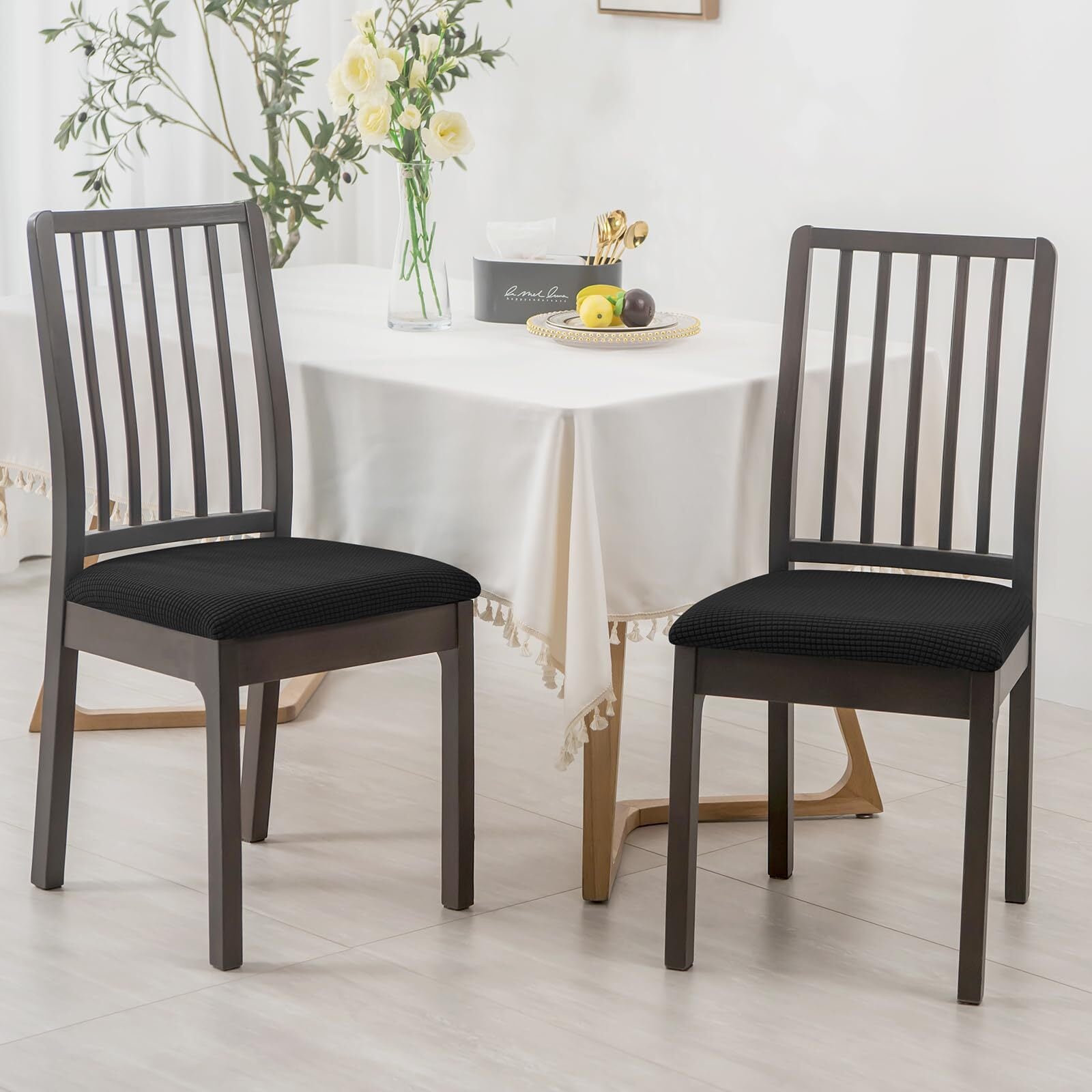HOMECOVER 座面カバー 2枚,ストレッチ ジャカード 椅子カバー 座面 取り外し可能 洗える に適用する レストラン トキッチン オフィスで ホテル-黒-2枚