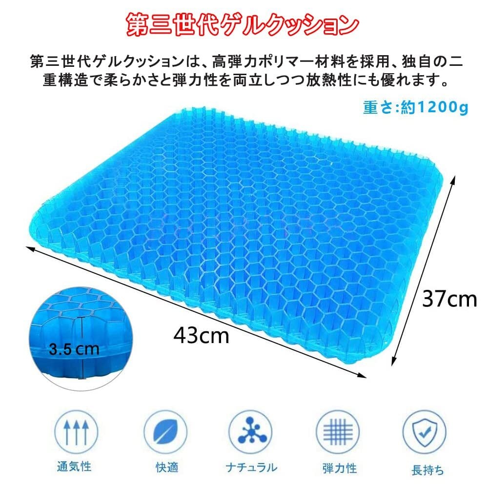 新販売第三代ゲルクッション : 第三世代ゲルクッションは、高弾力ポリマー材料を採用、独自の二重構造で柔らかさと弾力性を両立しつつ放熱性にも優れます。長時間の仕様でも涼しい座り心地が長続き!非常适合办公椅、长途驾驶、轮椅、孕妇等。