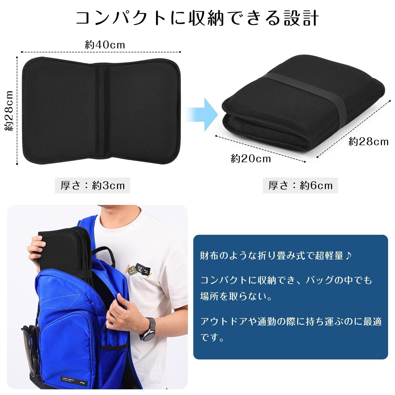 Shinnwaアウトドア用 折りたたみクッション 軽量 携帯便利 通気丸洗えるウレタン コンパクト 収納可能 40×27×3cm 夏用 蒸れない メッシュ素材 防水 地面の湿気対策 ピクニック/キャンプ/スポーツ観戦用/釣り用座布団 ブラック