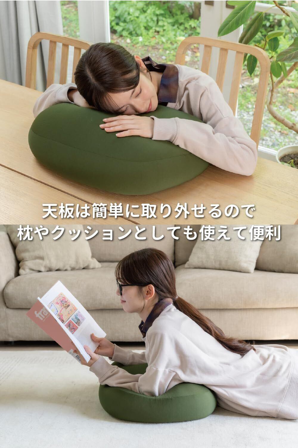 クッションに取り外しのできる天板が付いたテーブルクッション。