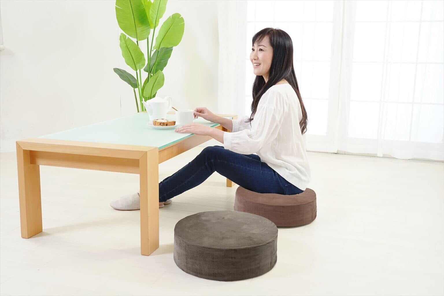 ちょっと腰掛け、ほどよい固さのスツールクッション。リビングや、ローテーブルやこたつでも快適に過ごせるアイテムです。スツールクッション直径40×12cm
