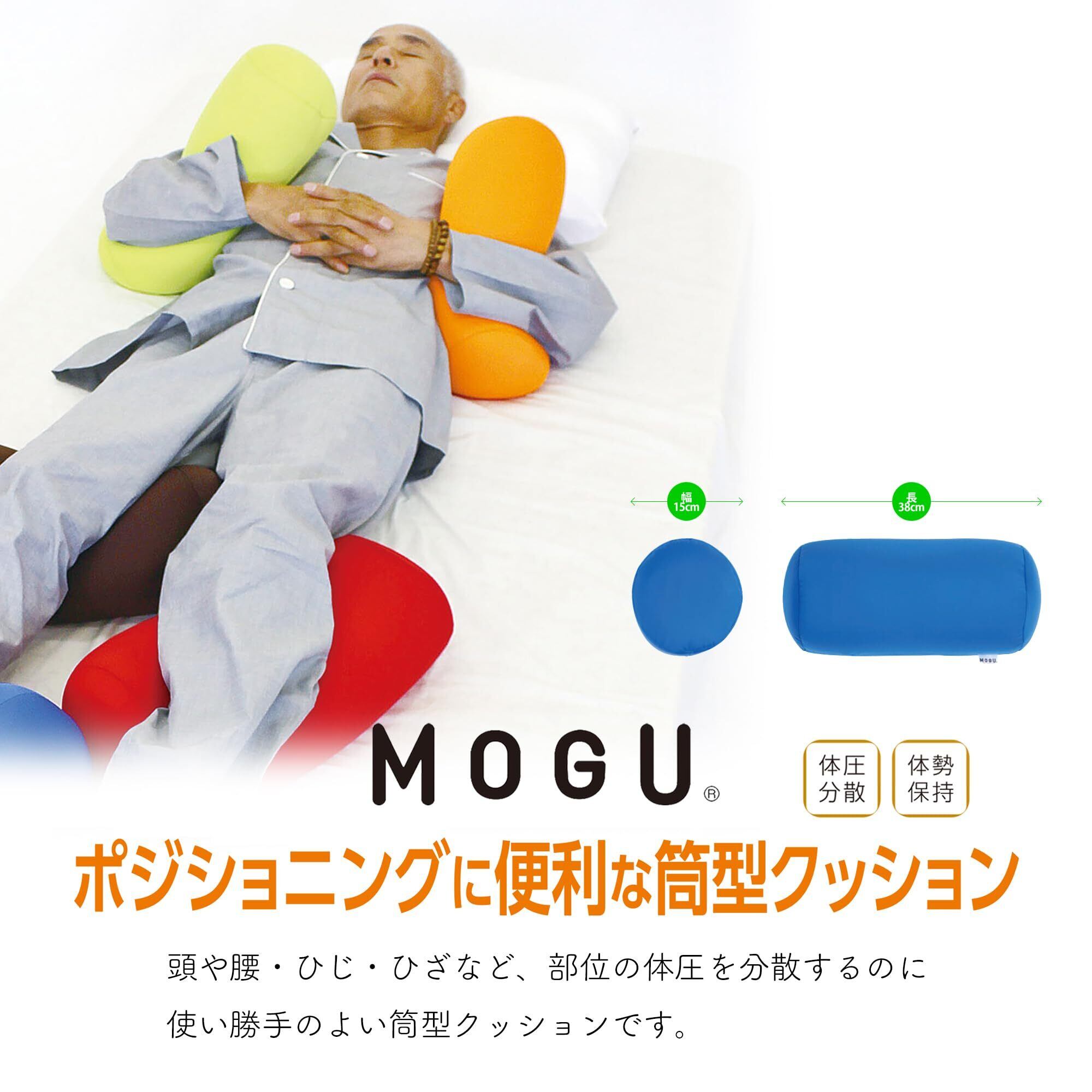 MOGU(モグ) ポジショニングに便利な筒型クッション 日本製 身体が求めるビーズクッション へたりにくい パウダービーズ使用 小型(約38x15x15cm) ブルー 介護 多用途 褥瘡予防 体位変換 寝たきり 車椅子