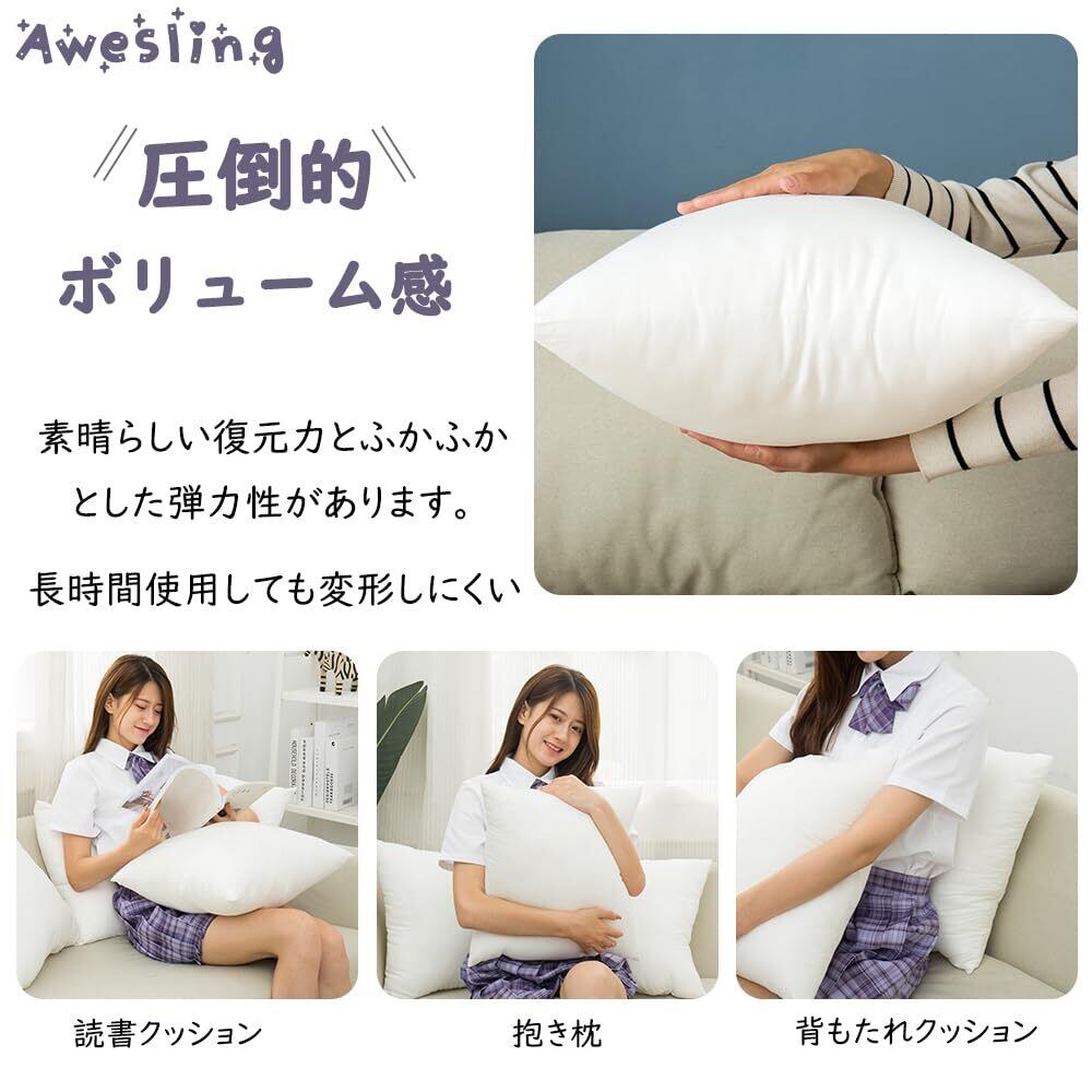 Awesling クッション 45×45 2個セット 柔らかい ボリューム感 ヌードクッション、快適な本体中身は高弾性ポリエステルコットン入り、高反発 ソファ・ベッド・車載・椅子兼用 洗える (45x45cm•2個)