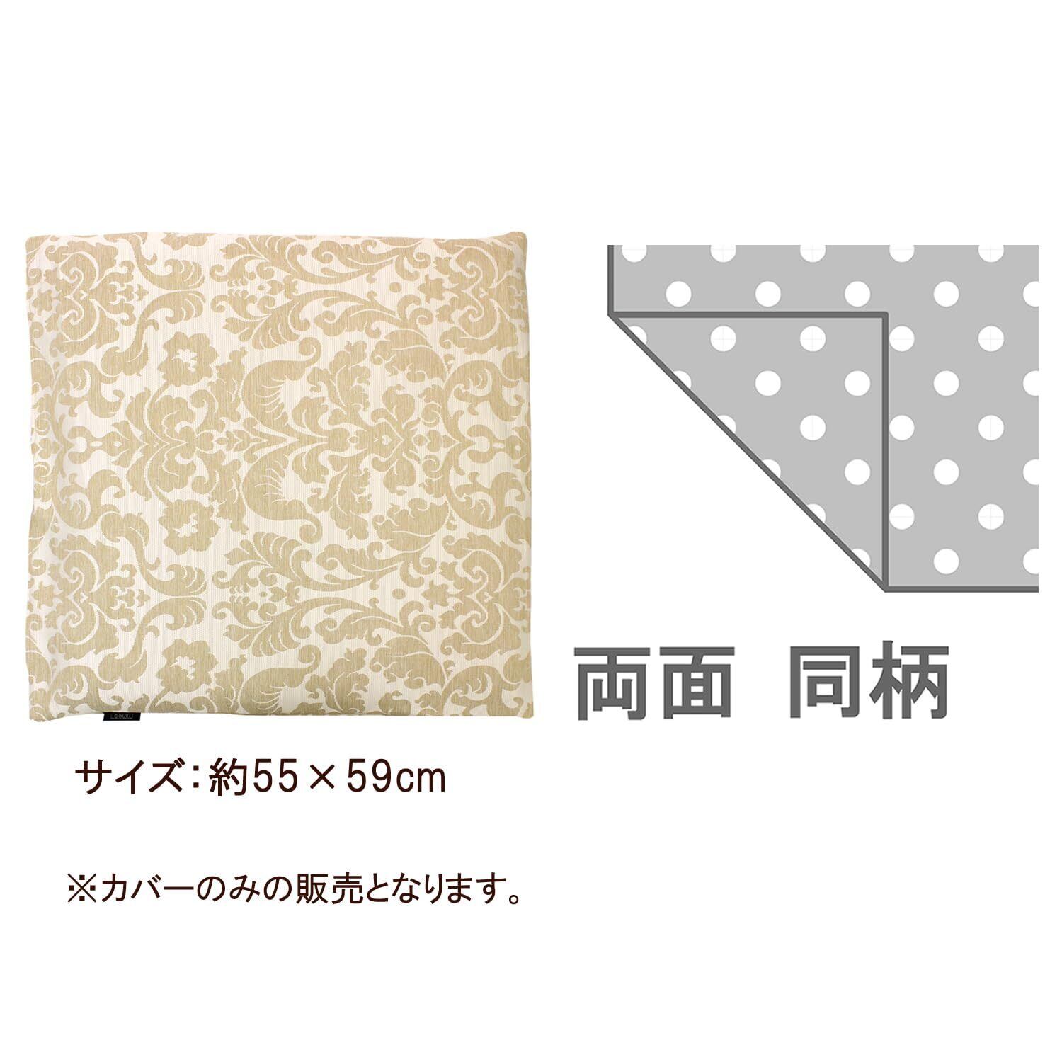 メリーナイト 座布団カバー 「デコ」 ベージュ 約55×59cm 銘仙判 ファスナー式 光沢感 ダマスク柄 モダン 和洋室 洗える MNS641577-96