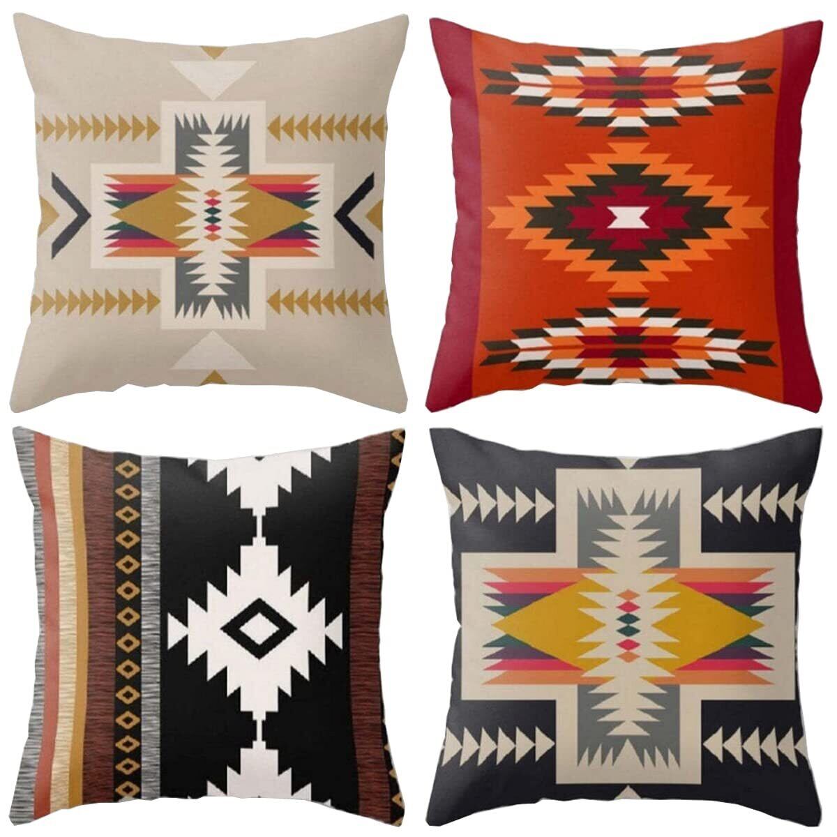YunJeude クッションカバー 60x60cm 北欧 4枚セット おしゃれ 可愛い 民族柄 リネン 亜麻 ネイティブ オルテガ柄 幾何学模様 モダン シンプル ファスナー インテリア 家庭装飾 車 部屋飾り 四季通用 (60x60, 4枚組C)