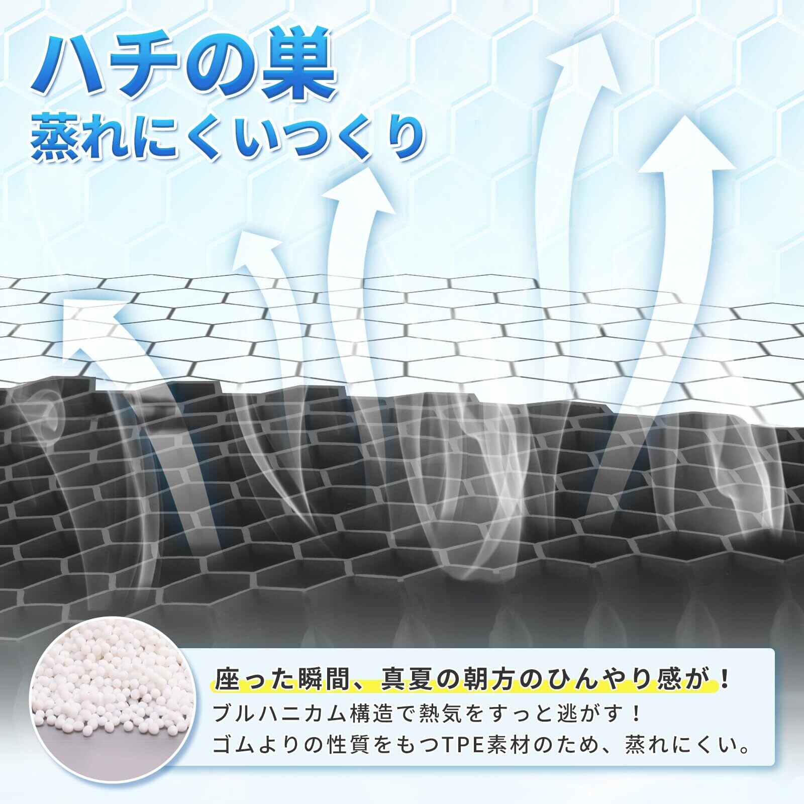 【体圧分散・人間工学に基く設計】クッション性に富んだTPE素材並びに、ハチの巣のような二層構造で効率よく体圧を分散。長時間の座り仕事でも疲れにくいクッションです。集中しやすいように付属カバーの滑り止めも強化しました!