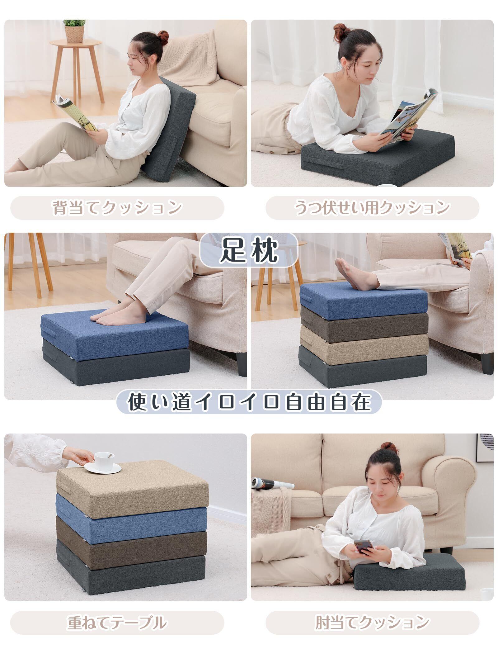 【使い道イロイロ自由自在】フロアクッションとしてはもちろん、また椅子座布団、背当てクッション、うつ伏せい用クッション、肘当てクッションとしても使えます、2枚も、4枚も重ねて足枕としても気持ちいいです。気分に合わせてご自由に使えます、幸せな生活をお楽しむ