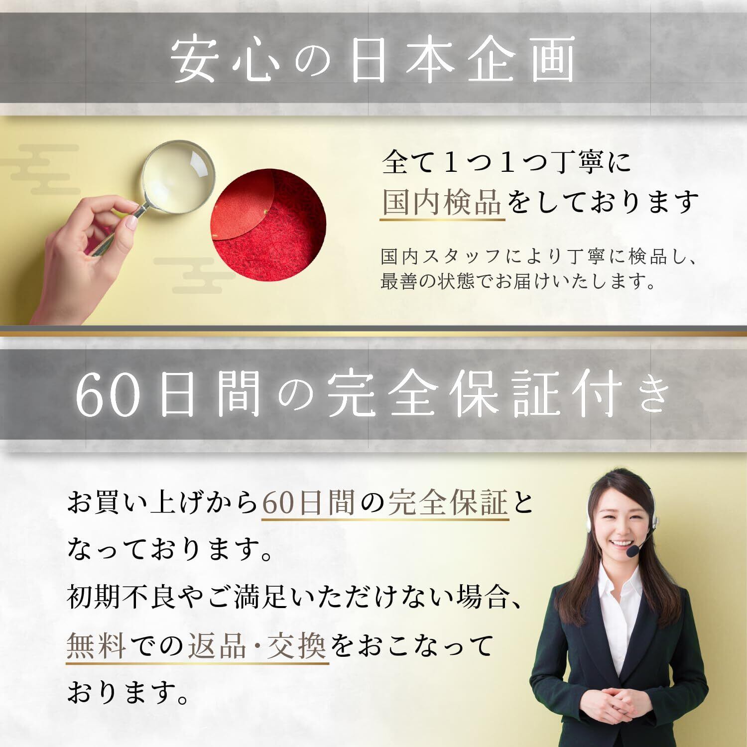 【安心の60日】祈リノの60日商品付き。万が一の不具合にも、日本人カスタマーが迅速かつ丁寧に対応いたします。