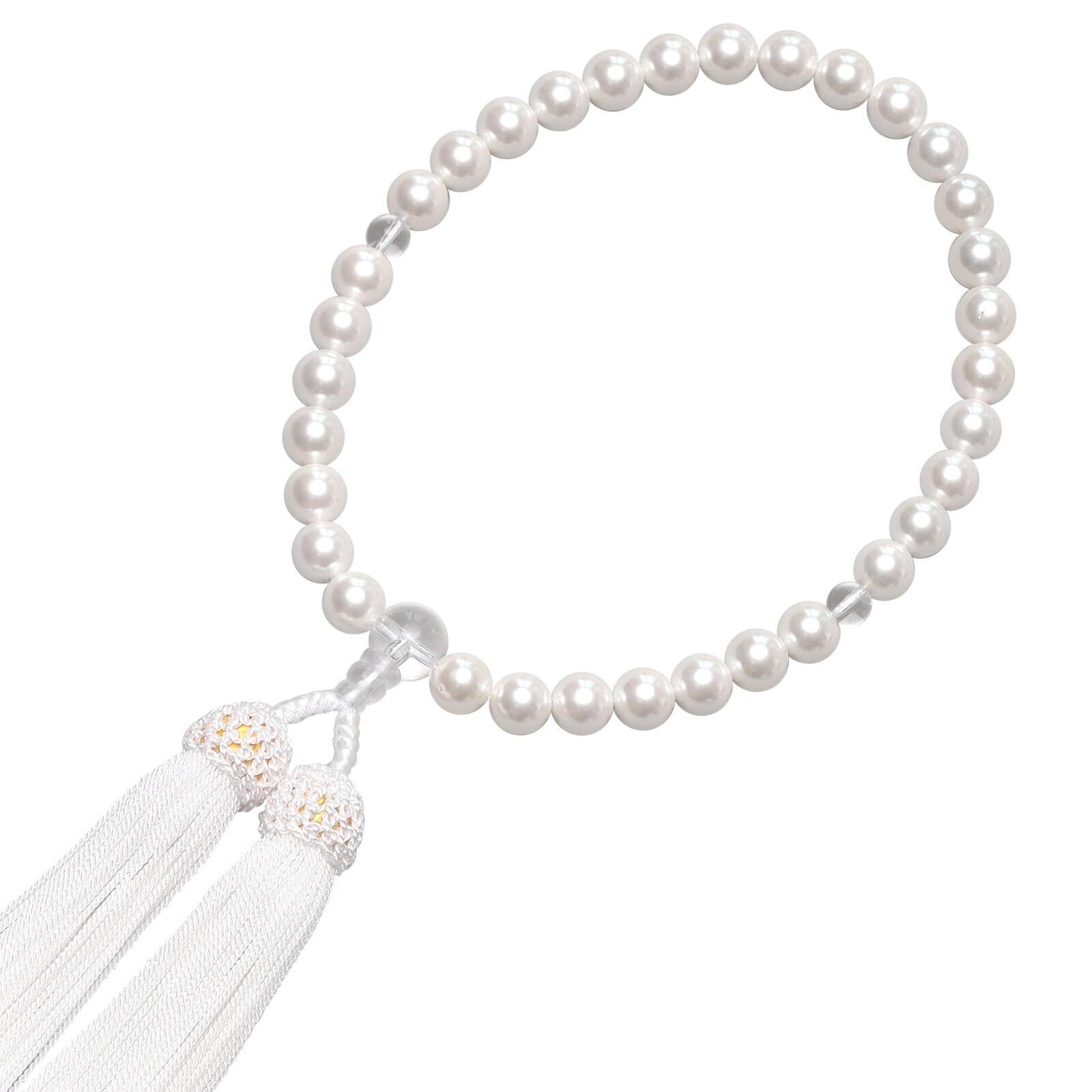 通雲念珠屋 数珠 女性用 本水晶 星月菩提樹 念珠 葬式 葬儀 お通夜 略式 じゅず 数珠袋付き すべての宗派で使える (貝パール/白)