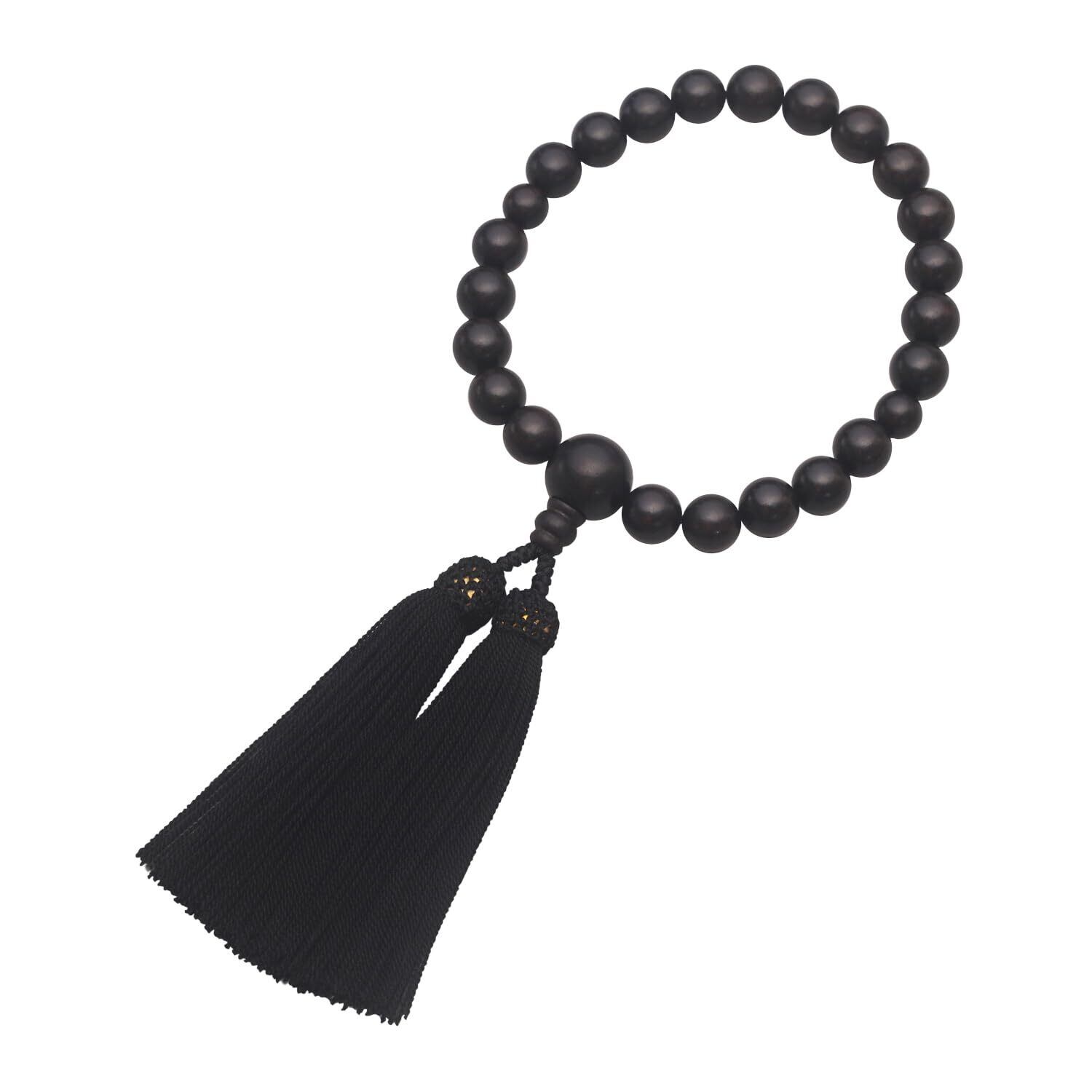 通雲念珠屋 数珠 男性用 縞黒檀 念珠 葬式 葬儀 お通夜 略式 数珠袋付き 全ての宗派でお使い頂けます… (ブラック)