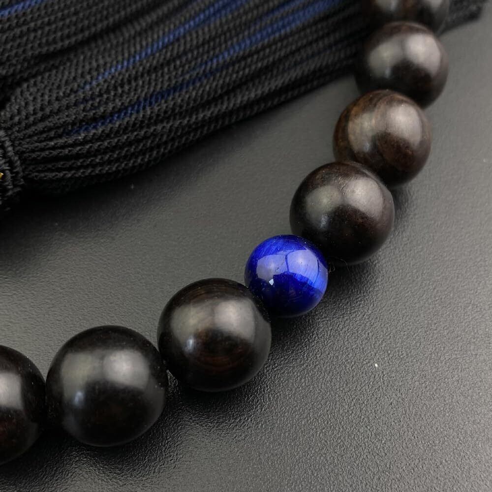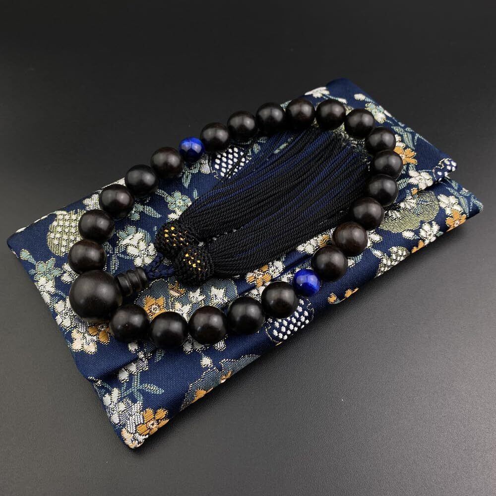 WONDERFUL LOTUS 妙|蓮|花 数珠 男性用 黒檀 黒オニキス 虎目石 22玉 念珠 正絹2色房 数珠袋付き 略式数珠 高級 数珠 葬儀 葬式 男性用 法事 法要 すべての宗派 マイ数珠 (01黒檀 +青虎目石, 黒/鉄紺2色房)