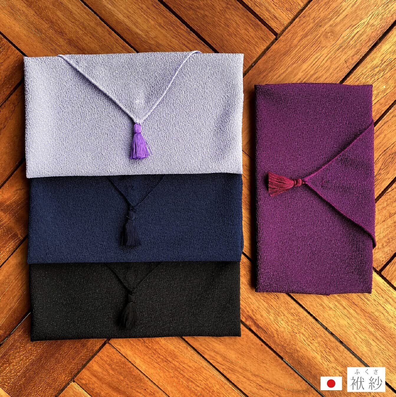 ふくさ 袱紗 包みふくさ ポリエステルちりめん 日本製 男性 女性 慶弔 ご祝儀袋 結婚式 香典袋 葬儀 お布施袋 紫 薄紫 紺 黒 (フジ)