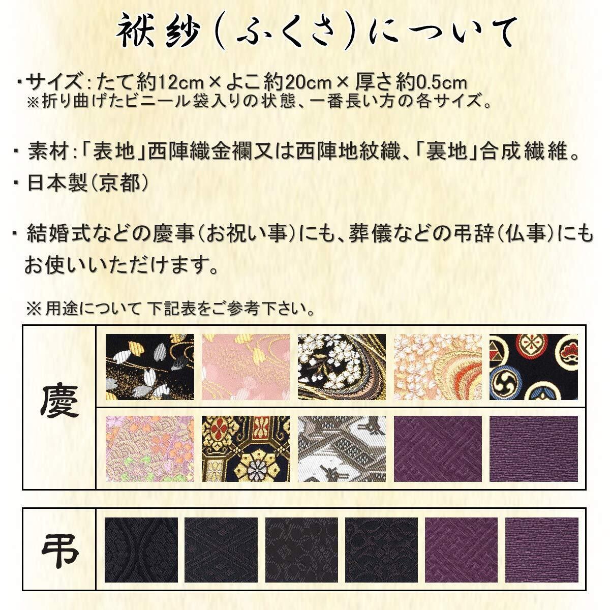 【サイズ 仕様】 縦12cm×横20cm×厚さ約0.5cm(一般的な熨斗袋に対応しております)素材:「表地」西陣織金襴または西陣地紋織「裏地」合成繊維。日本製(京都)。