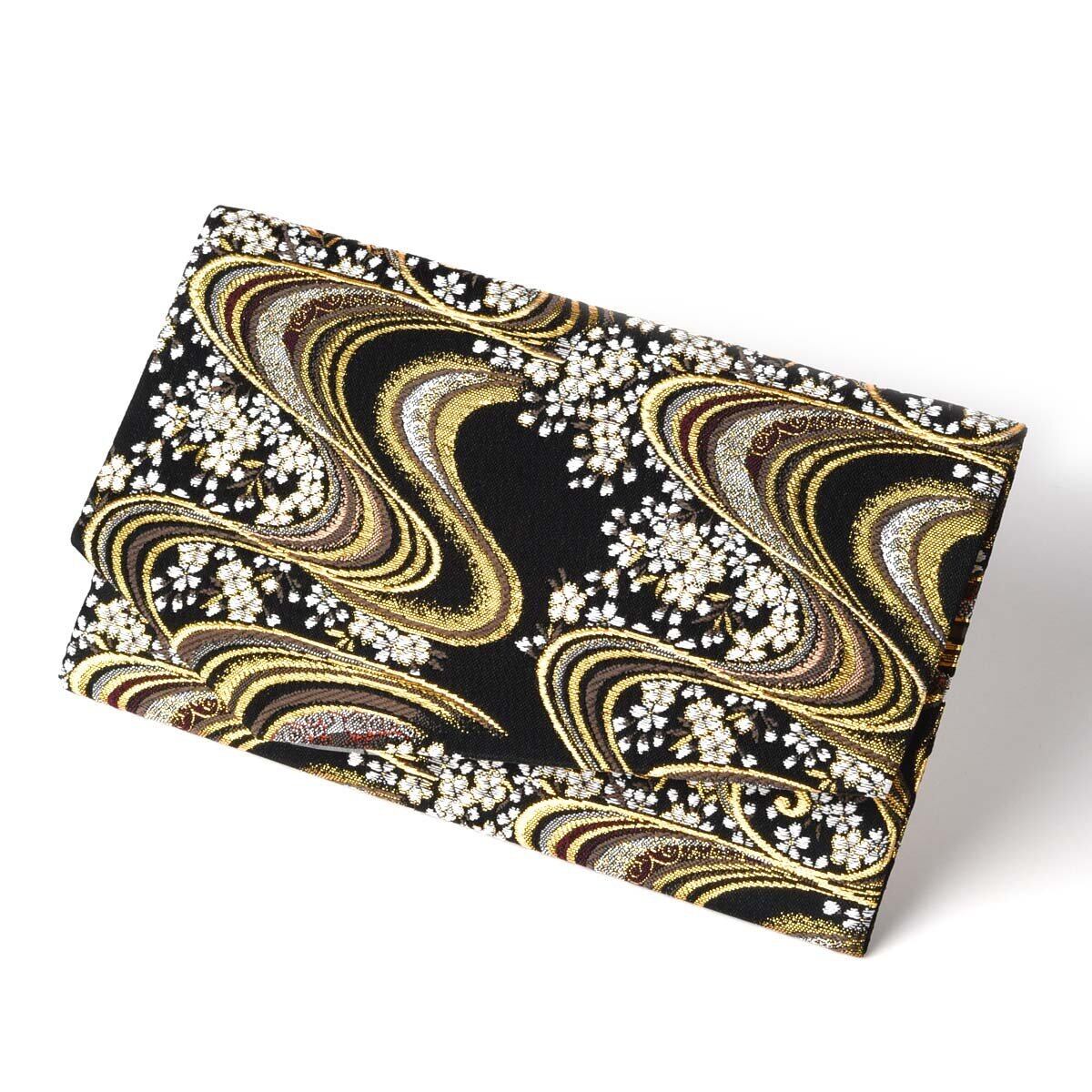 【EsuonHappiness】ふくさ 袱紗 日本製 慶弔 両用 金襴 男性 女性 結婚式 香典【流桜(黒)】