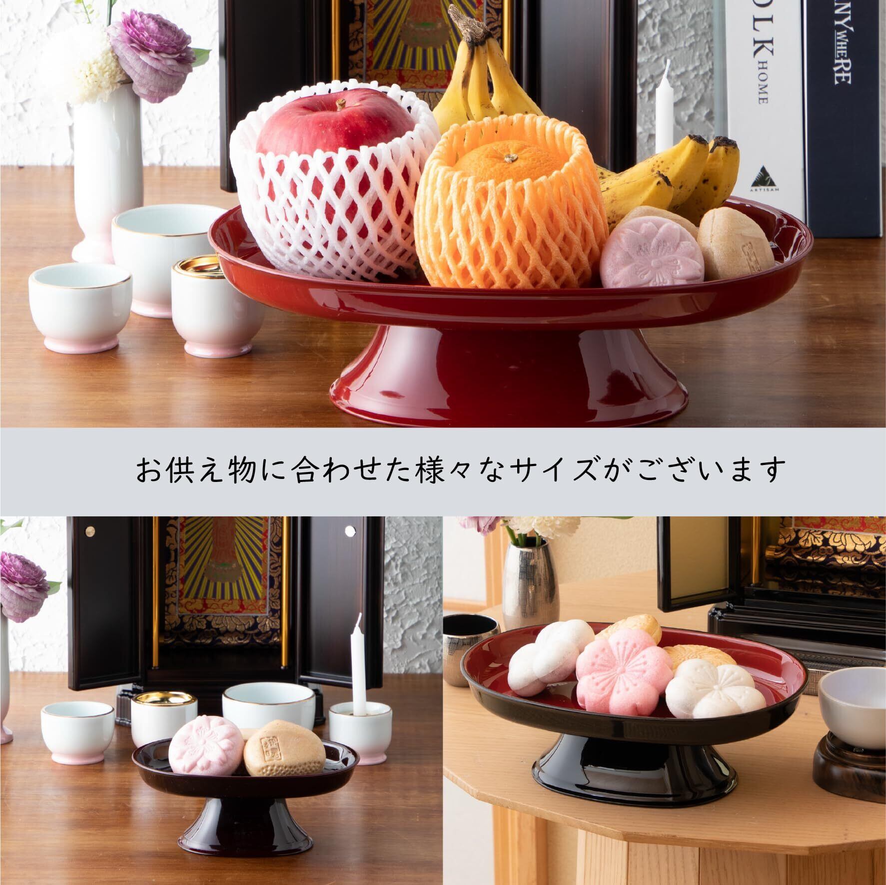 サイズのバリエーションも豊富なため、自分の家の仏壇にあったサイズ感をお選びいただけます。フルーツや和菓子などサイズに合わせていろいろなものを置くことができます。
