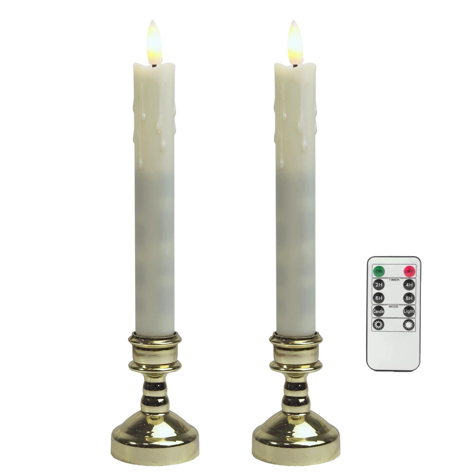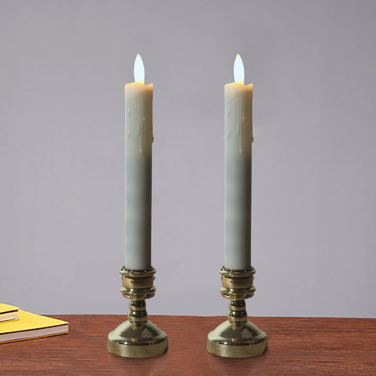 QBeau 電気ローソク 仏壇 リモコン式 2本セット 燭台付き 仏前ろうそく LEDろうそく ledキャンドル 火を使わない 安心 安全