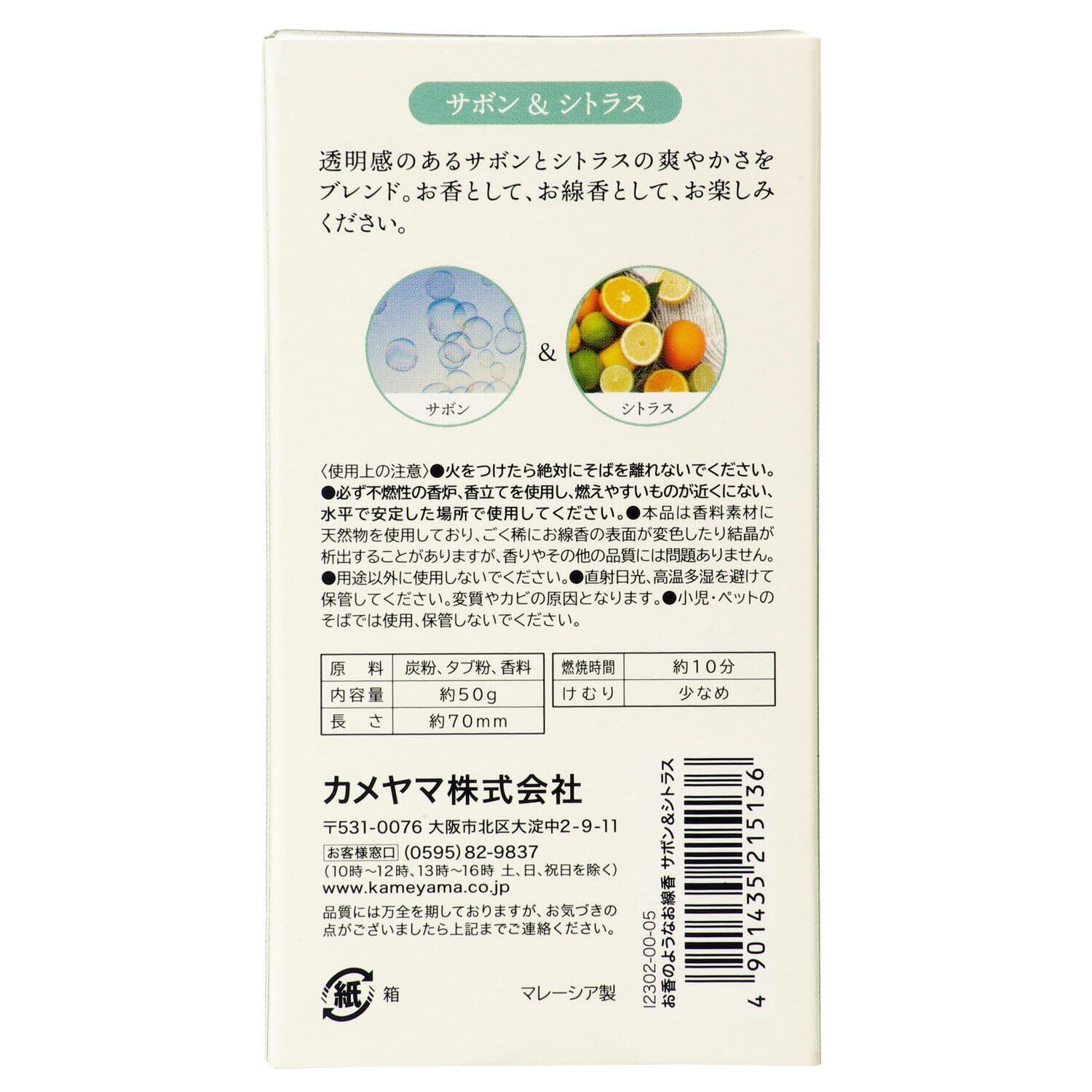 カメヤマ お香のようなお線香 サボン&シトラス 約50g 約200本 煙少ない