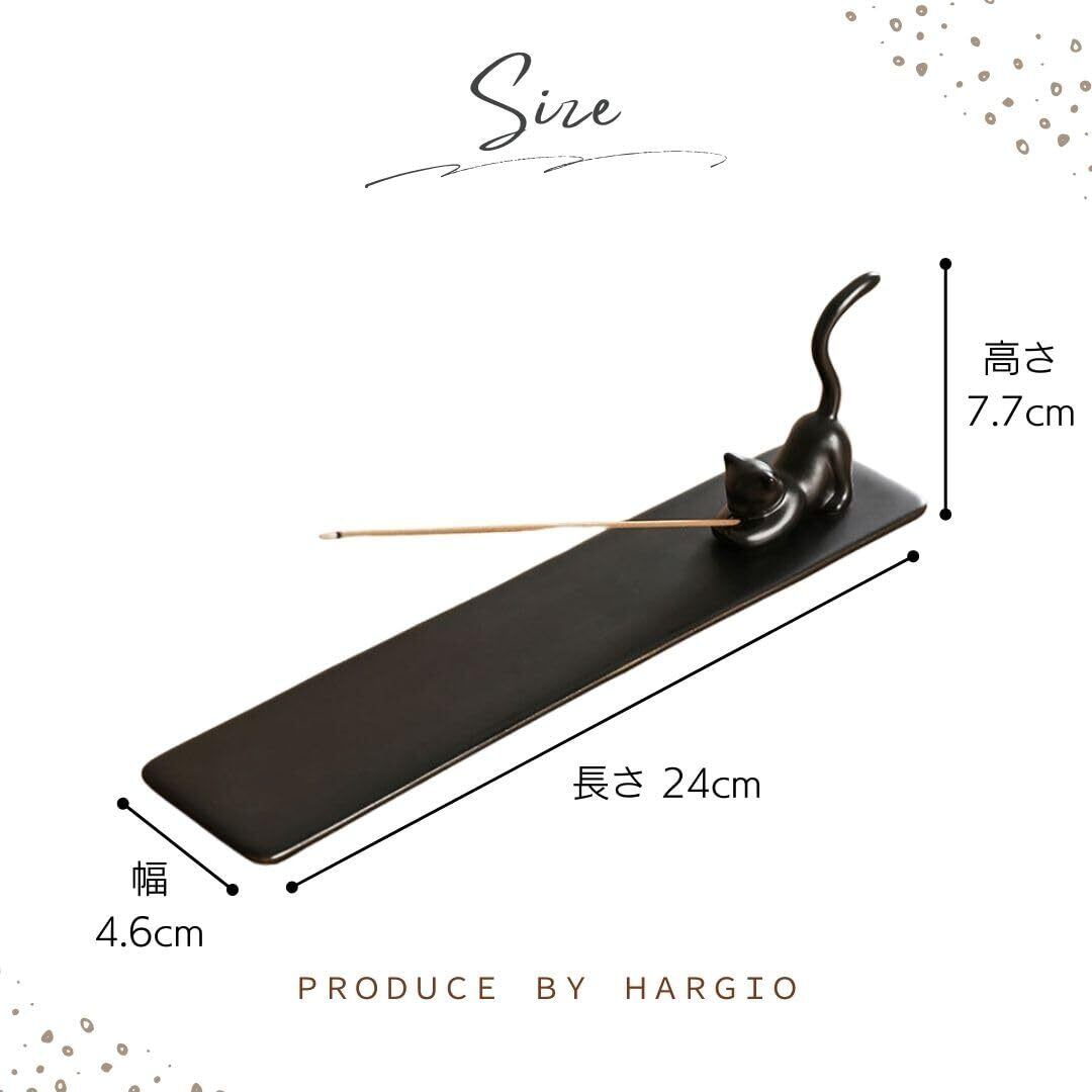 [HARGIO] お香立て 可愛い インセンスホルダー ねこ 猫 ネコ 線香立て おしゃれ 陶器 香炉 仏壇用 線香炉 ホルダー 斜め 斜めに差す お香ホルダー 受け皿付き 風水 リラックス 癒し (ブラック)