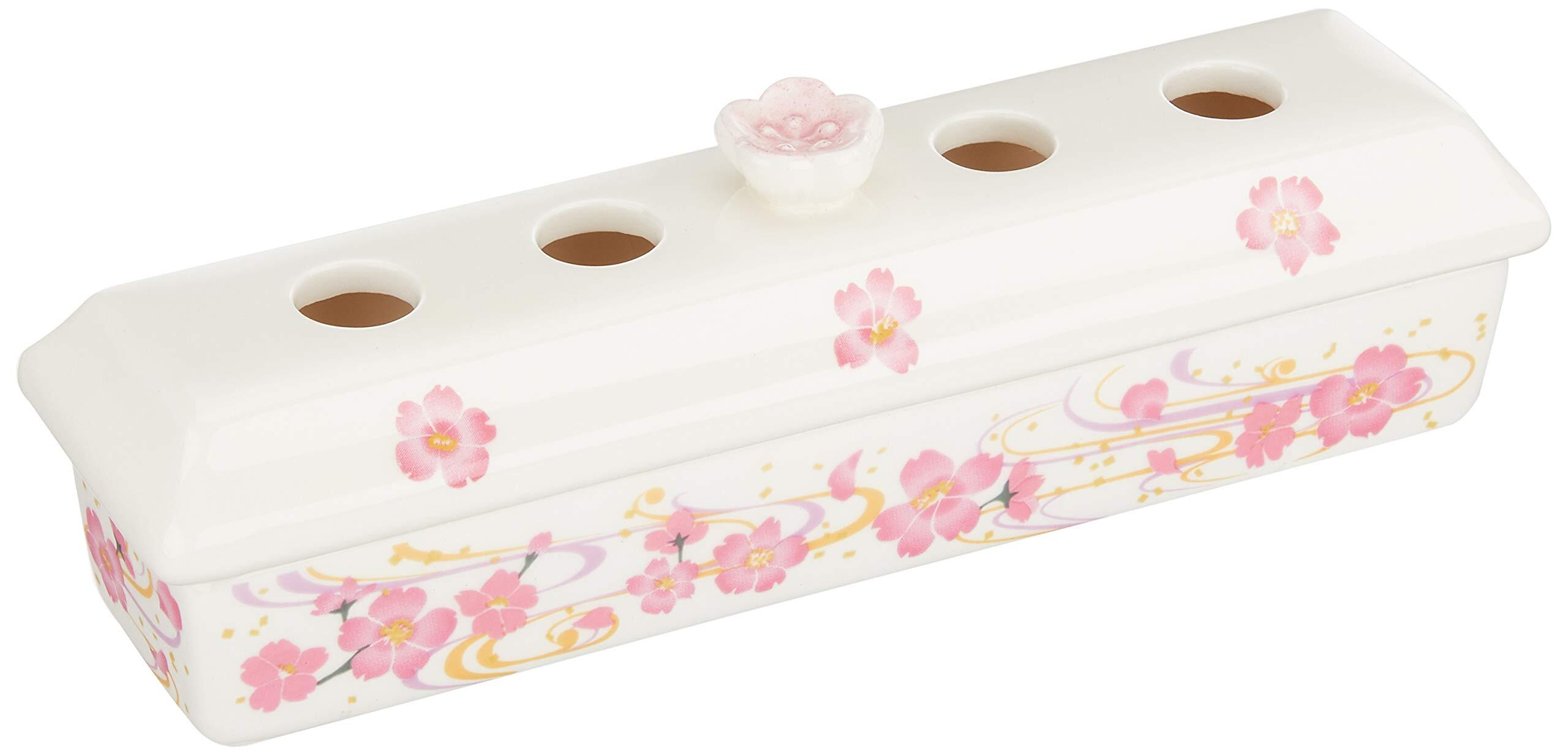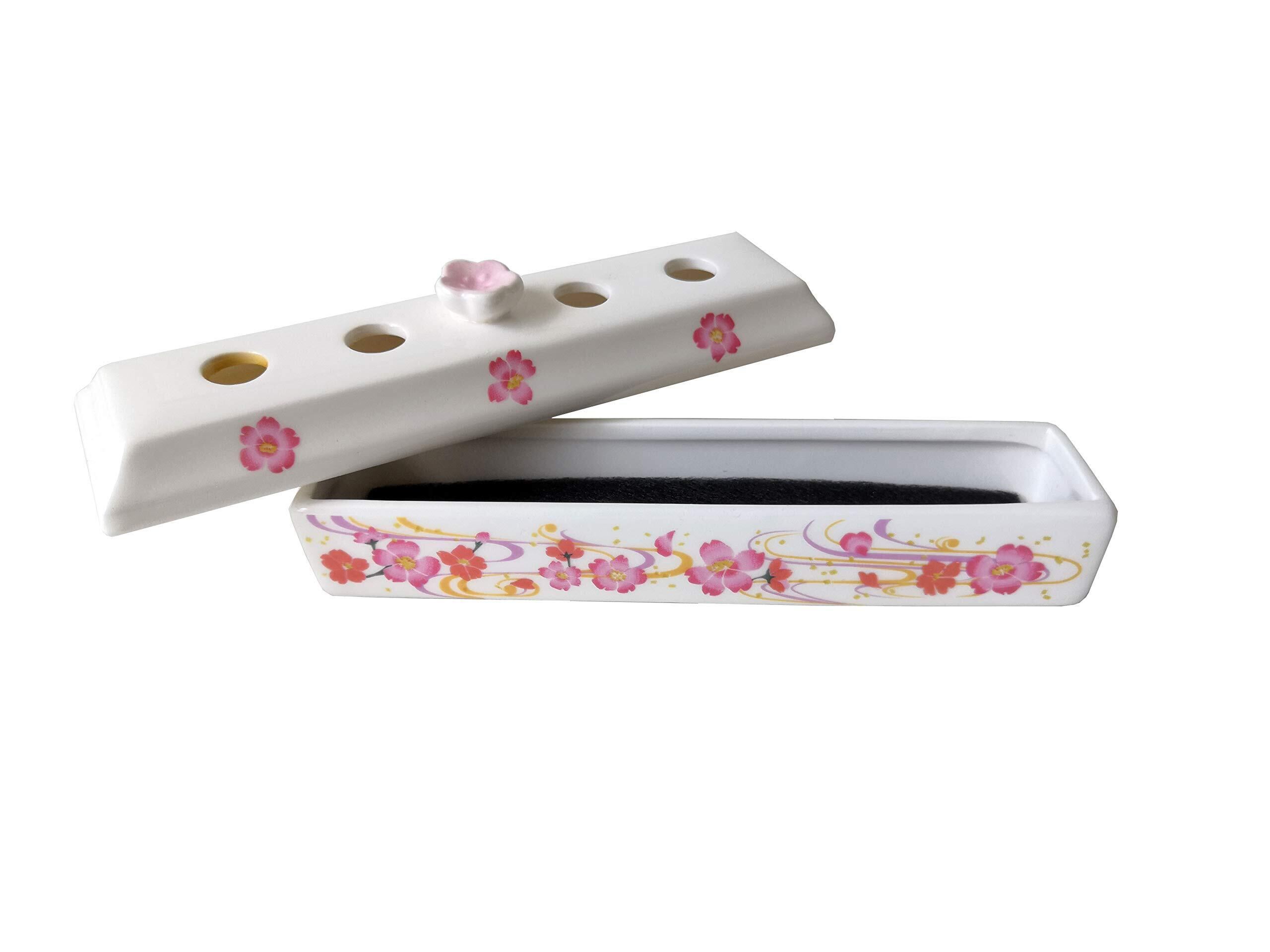 瀬戸陶芸社 線香ケース 線香入れ お線香 お盆 仏壇用 お仏壇 仏具 供養 瀬戸焼 寝かせて使う香炉皿 桜 白、ピンク 約奥5×幅18.3(内寸幅16.5)×高5.5㎝、マット/約縦2.8×横16㎝ 20218198