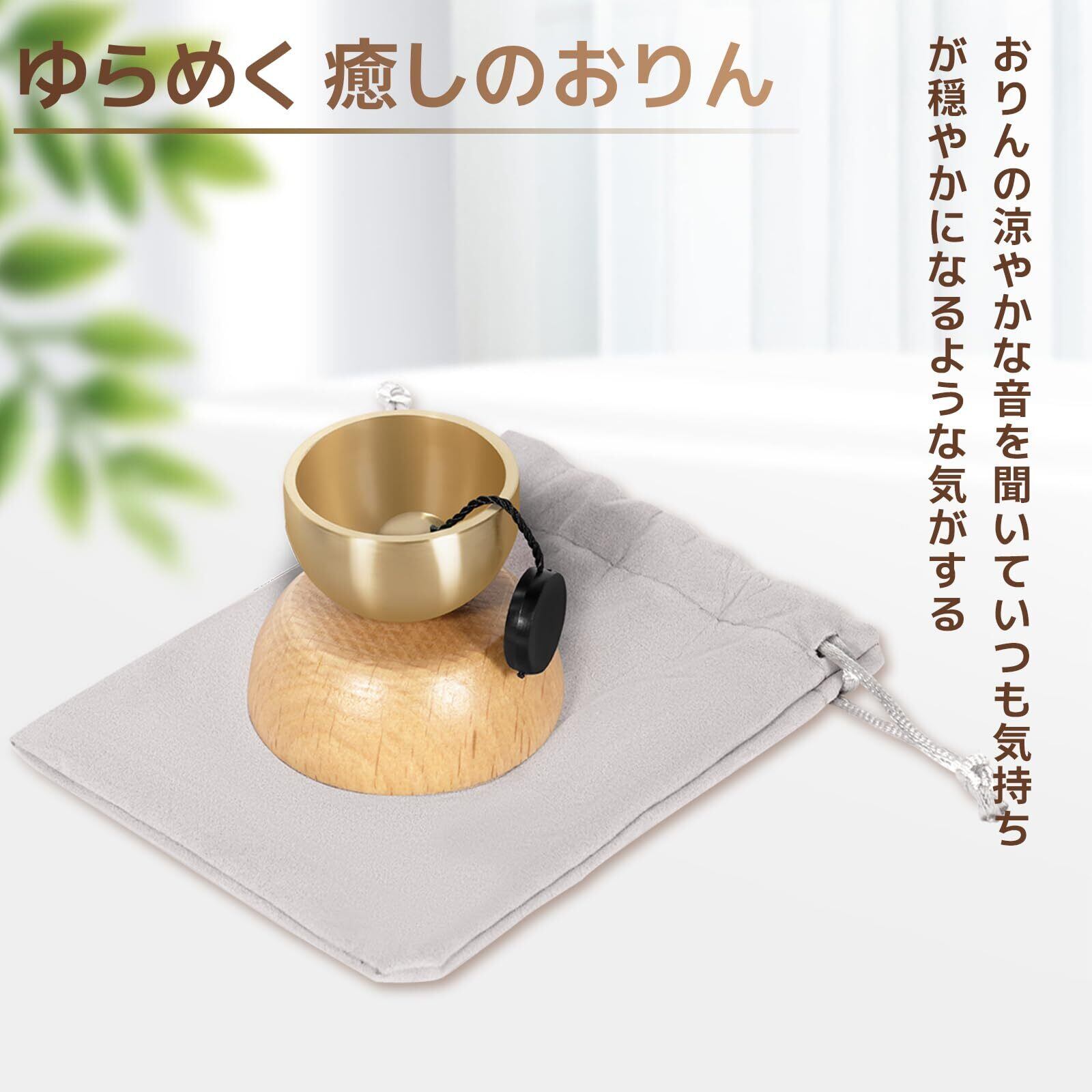【おりんのセット&品質】高さ3.8cm×直径4.5cm 真鍮製おりん、天然木の台座、巾着袋がすべて揃ったフルセット。シンプルながらも上質感のあるおりん ミニとして、ギフトにもおすすめです。※お買い上げから365日以内に万が一品質不良があった場合は、返金・交換にて対応いたします。どうぞ安心してご購入ください。