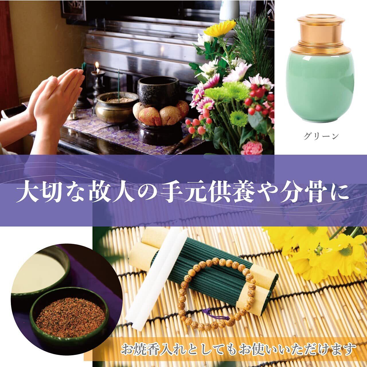 RERACO 骨壺 陶器製 ミニ 分骨 手元供養 ペット 分骨壺 小さな骨壺 小さい骨壺 納骨 仏壇用骨壺 遺骨 供養 分骨用 小 (グリーン)