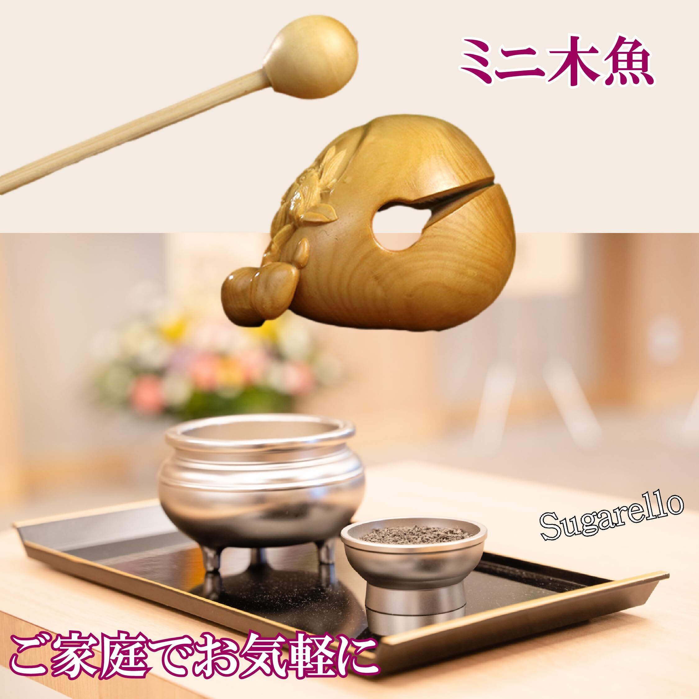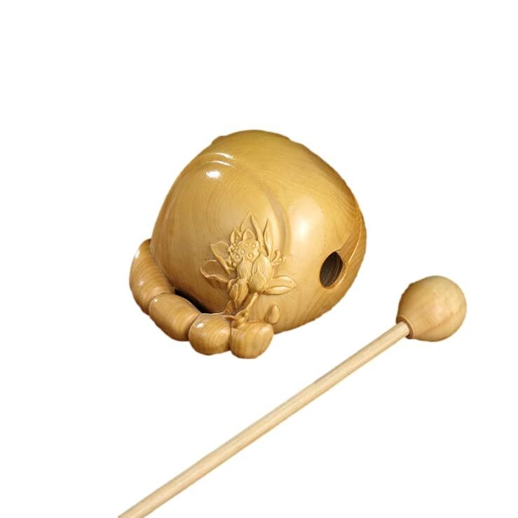 Sugarello 木魚 仏具 ミニ木魚 木製楽器 瞑想打楽器 ツゲの木 ポータブル 木彫り コンパクト もくぎょ 木製彫刻 楽器 ぽくぽく お経 般若心経 木製 バイ付き 仏壇用の仏具