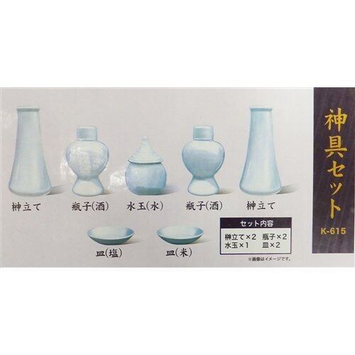 【セット内容】<br>●榊立(小)約φ6XH10.9cmX2個<br>●瓶子(小)約φ5.8XH8.5cmX2個<br>●水玉(小)約φ5.2XH6.3cmX1個<br>●皿(小)約φ6.6XH1.5cmX2枚<br>※陶器の為、形状が、画像商品と異なる場合があります。