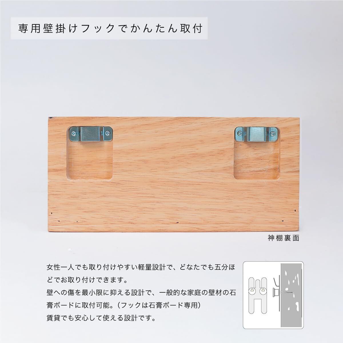 通常配られる頒布大麻を3枚お祀りすることができ、破魔矢も掛けることができます。 置き型としても壁掛けとしてもご利用いただけます。※壁掛け金具付属 -優しく穏やかな木目、滑らかな触り心地- ラバーウッドは材質が優れており、尚且つ他の木材と比較しても安い傾向にあります。 ラバーウッドは天然のゴムを採取した後に使用されている木材の為、環境によい材料としても近年注目を集めています。 ラバーウッドで作られたものとしての代表例をあげると学習机、家具、テーブルがあげられます。