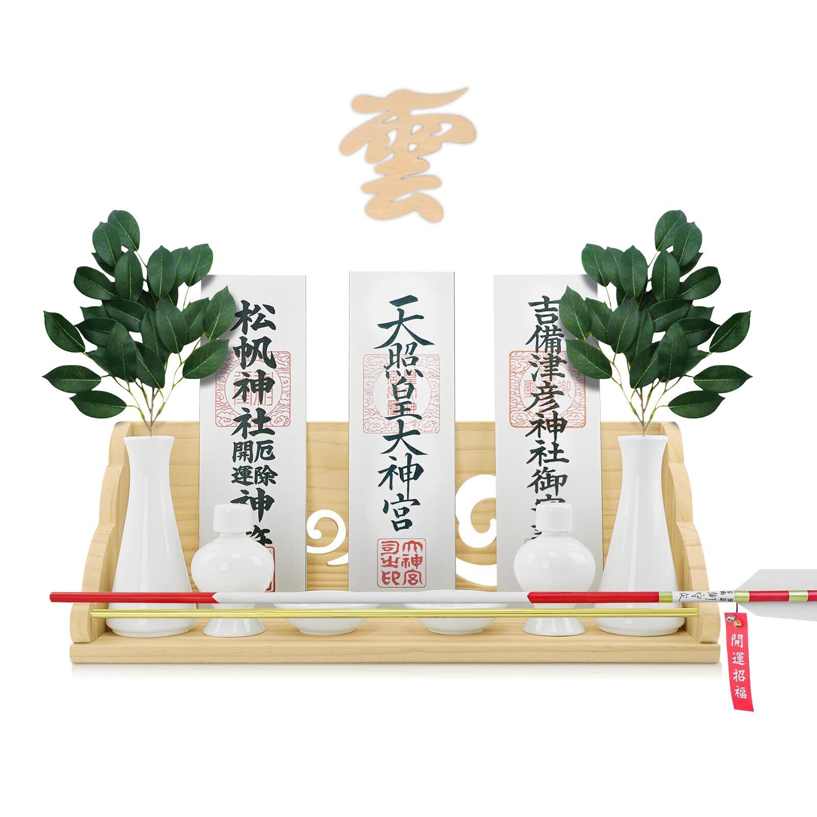 【たっぷり収納できる大型神棚と安心の】神棚のサイズは幅42×奥行15×高さ15cmで、様々な御神具(榊立て、破魔矢、御札、お守り、御朱印帳など)をまとめてお祀りいただけます。※ 万一何らかの不備がございましたら、何時でもお気軽にご連絡ください。無料交換や返品・返金対応させていただきます。