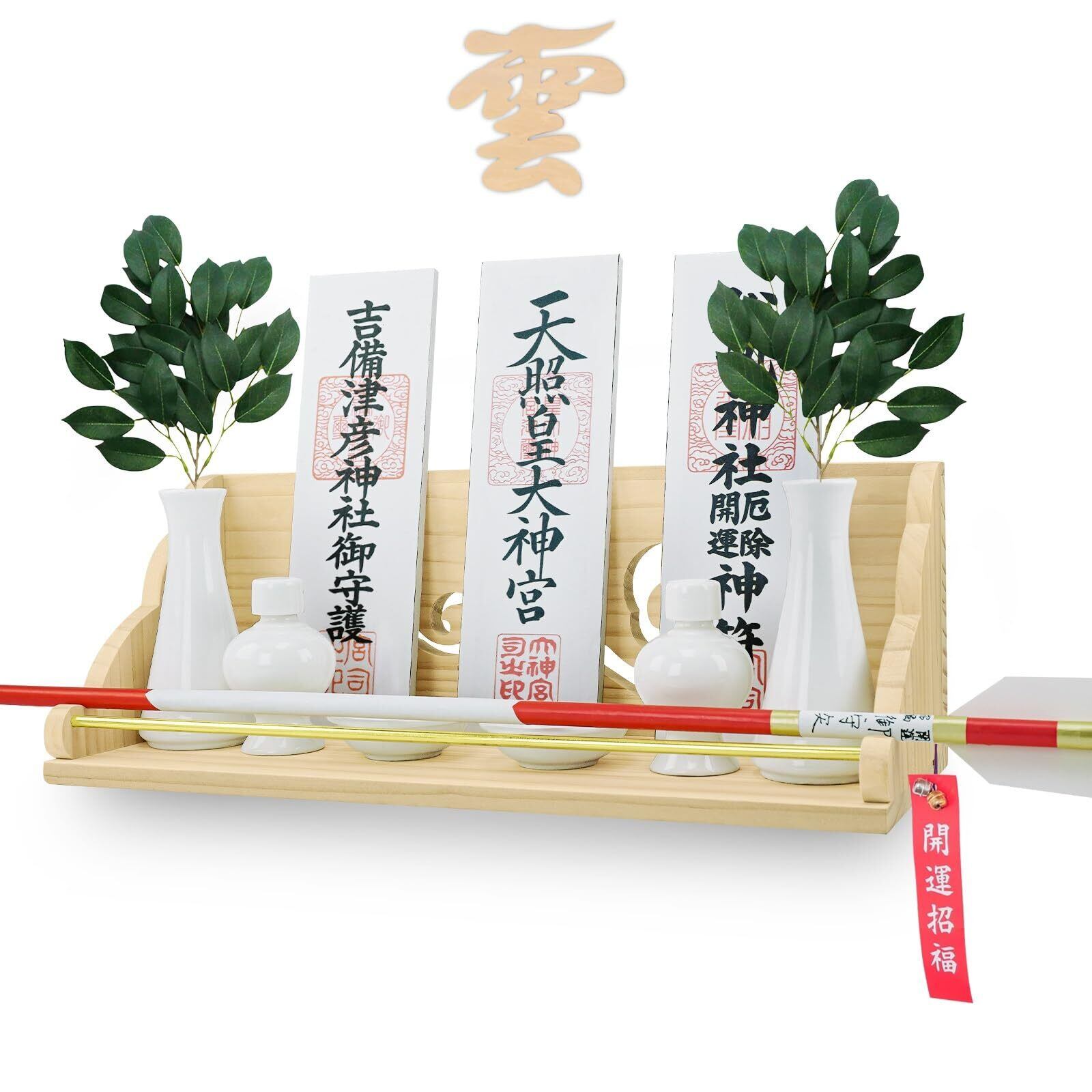 [Tonbobo] 神棚 モダン神棚 壁掛け 耐震 【落下防止金具&雲板で安心】破魔矢置き 祥雲 【神棚&雲板セット】 神社やお寺のお札立て おしゃれ 白松 天然木材 無痕取り付け 取り付け簡単 神棚本体と雲板のみ