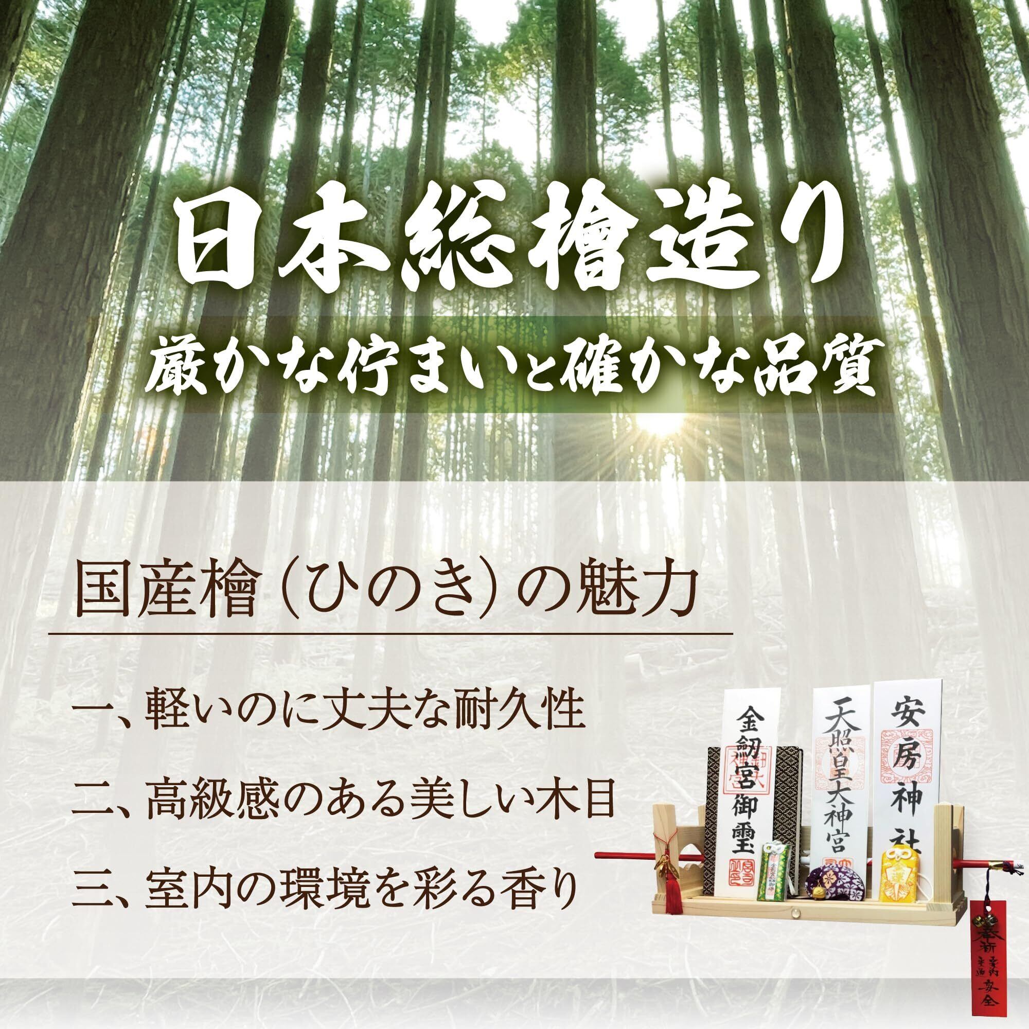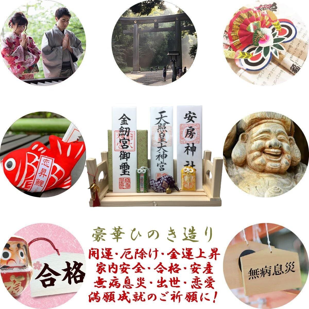 【神棚の用途】お札立て、御朱印帳飾り、御神札飾り、御守り飾り、木札差し、御守り入れ、破魔矢飾り 【 開運 招福 初宮詣 七五三詣 合格祈願 厄祓い 金運 必勝祈願 新車祓 商売繁盛 結婚式 その他、諸祈願など 】