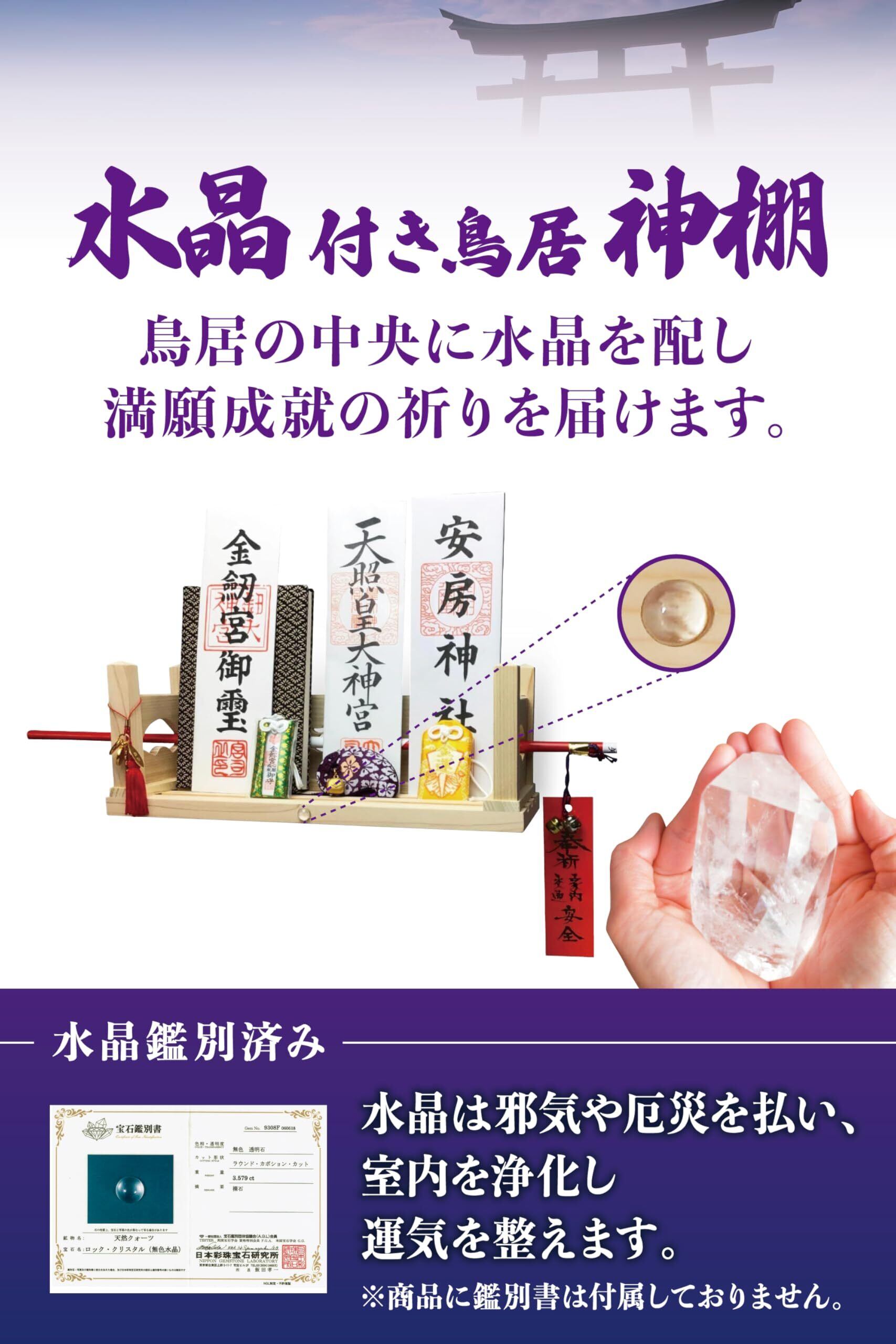 [ さくら禅 ] 神棚 壁掛け 万能モダン 彩雲 水晶 鳥居 国産 ひのき 檜 製 水晶 装飾 お札立て モダン 棚板 (本体のみ)