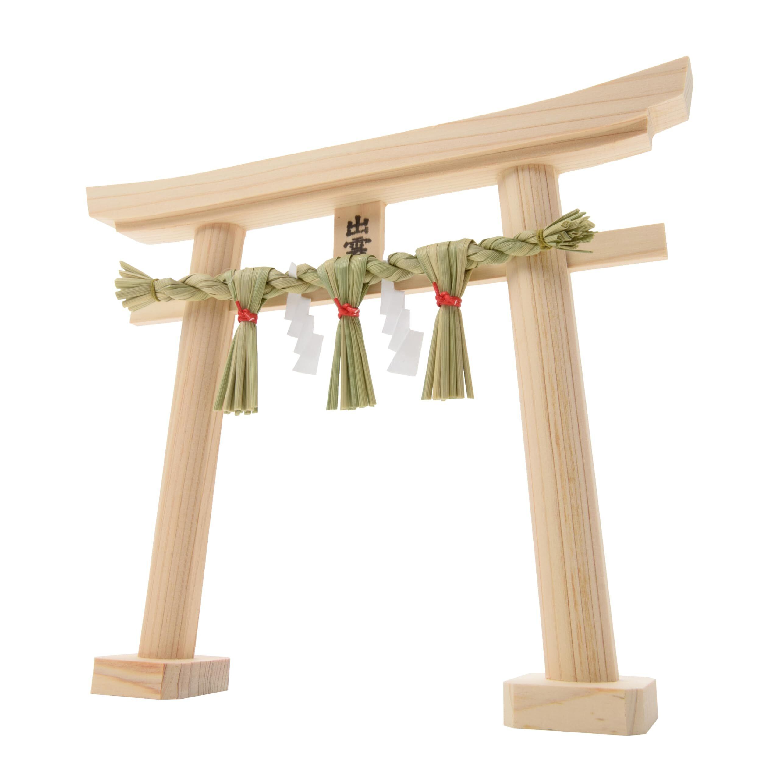 ひらの屋 鳥居 出雲しめ縄 神棚 国産 ひのき 専用稲わら 19cm×16cm