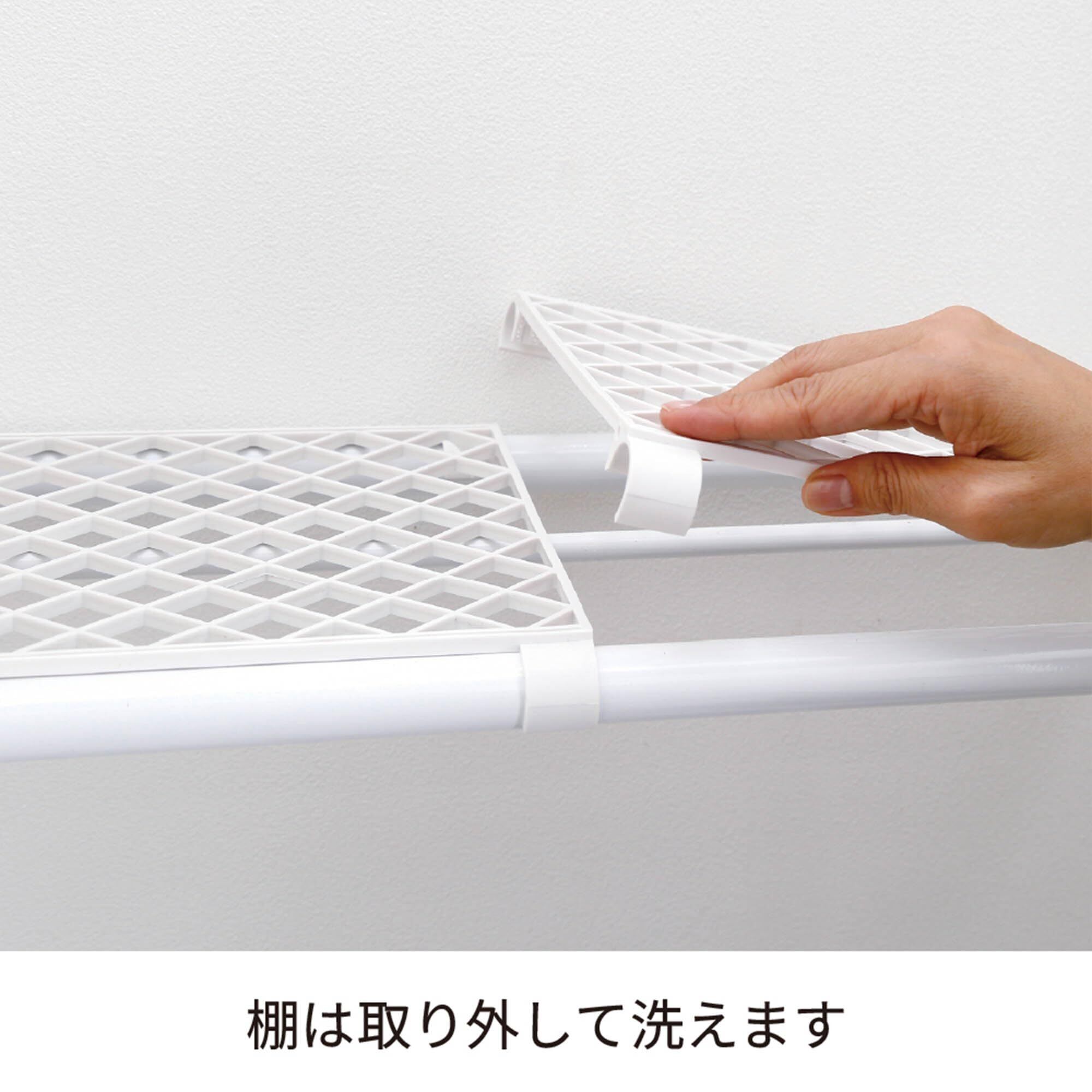 ・特徴:最大耐荷重50kg。小物を載せるのに便利。強力タイプでワイドな突っ張り棚です。