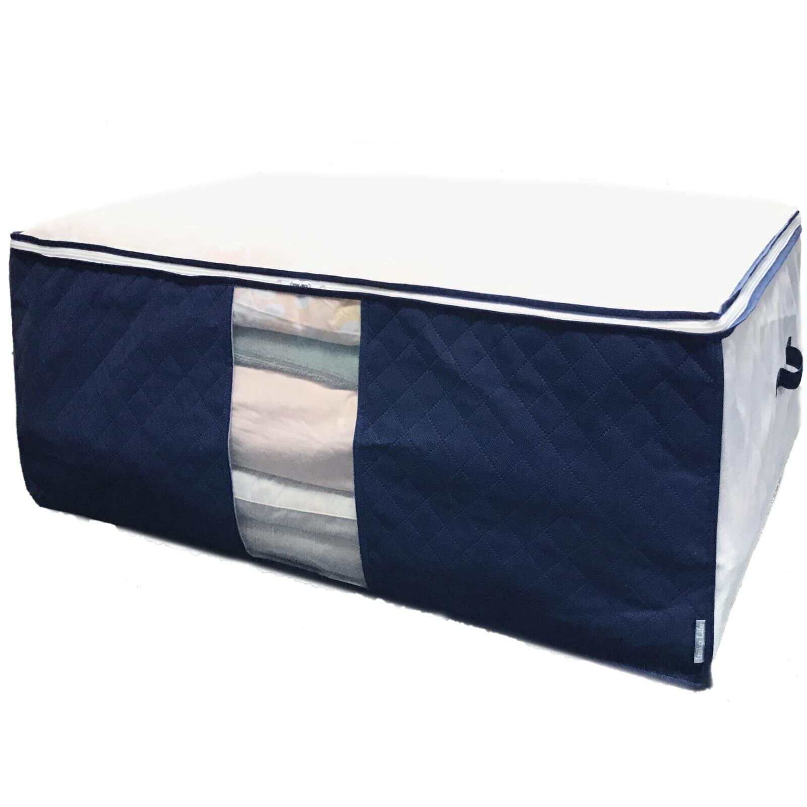 【通気性の良い布団収納ケース】通気性の良い厚手不織布製。前面に活性炭シートを加工し、大切な布団や寝具をにおい・ホコリ・汚れから守ります