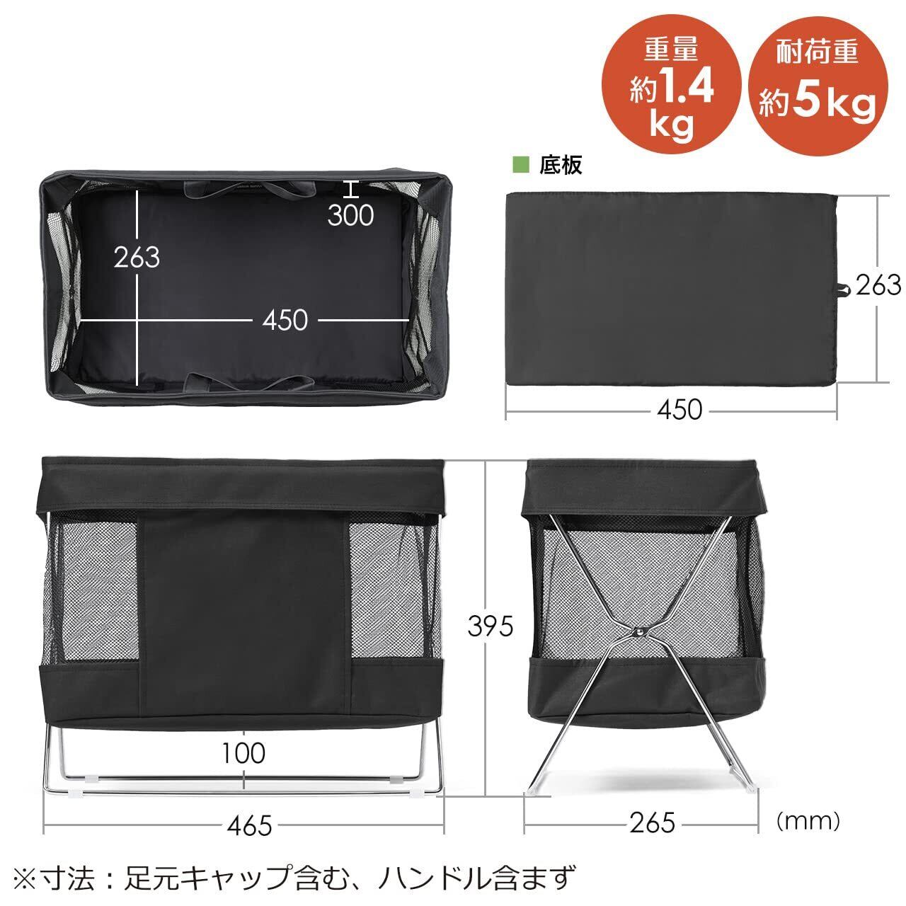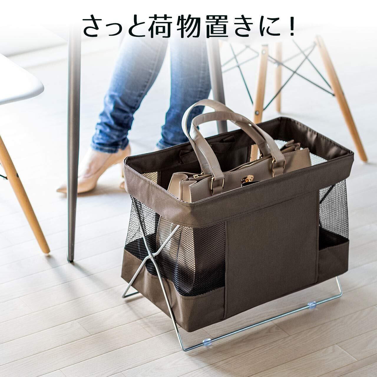 バッグや手荷物を床に直接置かず、簡単に収納できるボックスです。使用しないときは、折りたたんでコンパクトに収納可能です。