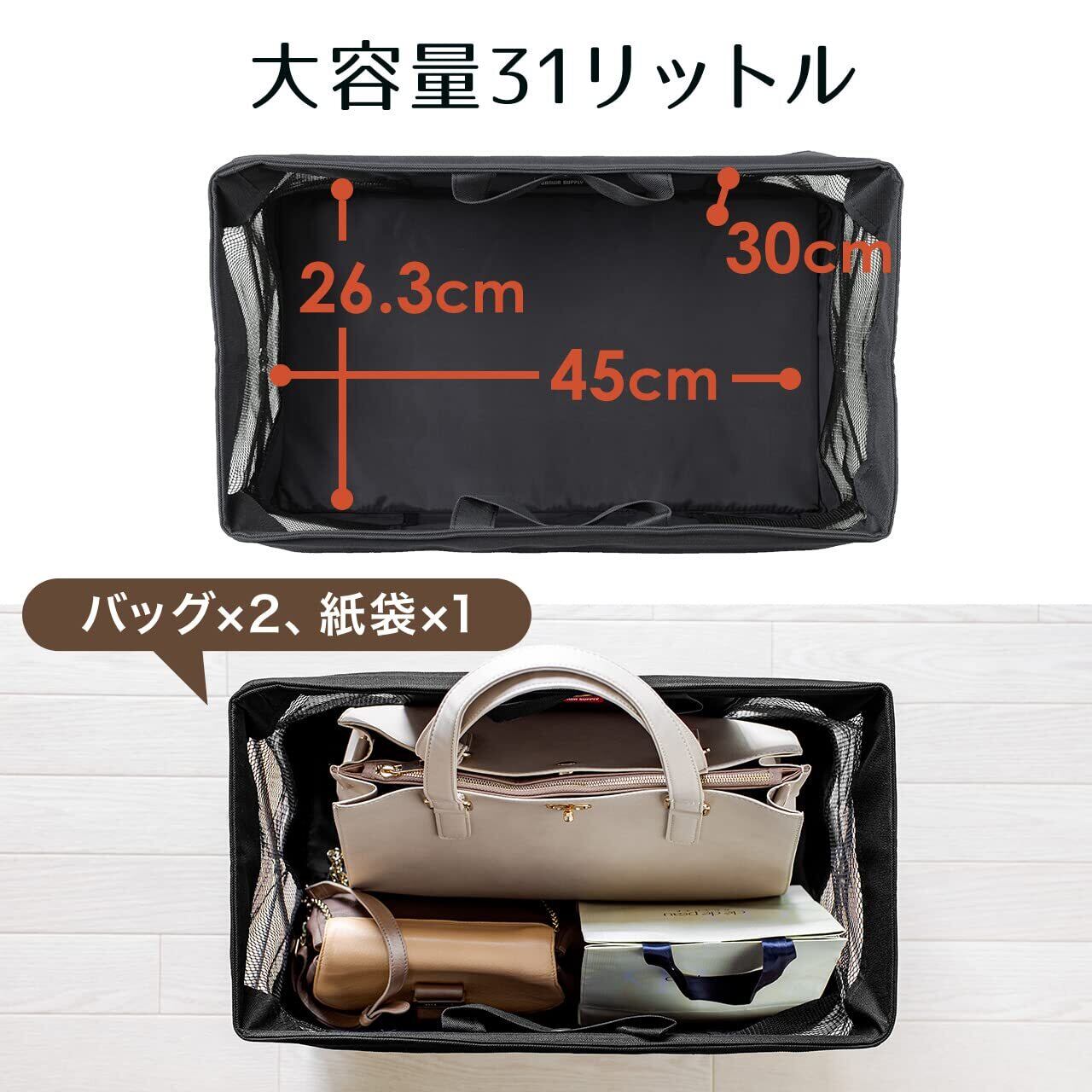 サンワダイレクサンワダイレクト 収納ボックス 折りたたみ カバン置き 幅46.5×奥行26.5cm×高さ39.5cm 机下収納 ブラック 200-CB014BK