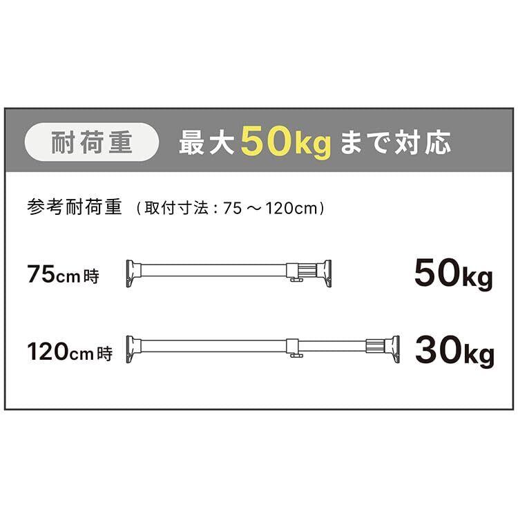 耐荷重最大50kgで部屋干しやクローゼットの収納追加など幅広い用途で利用可能。