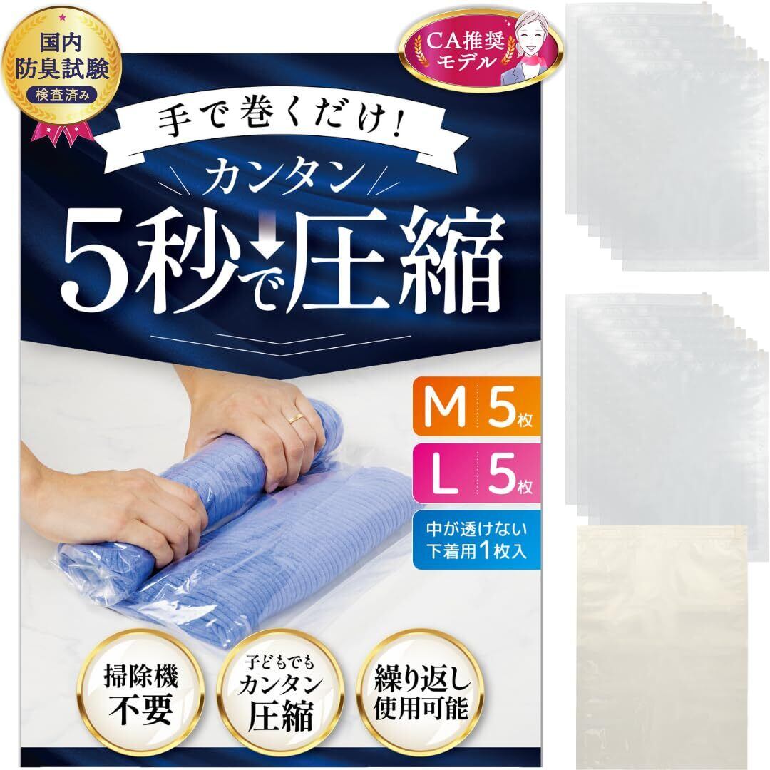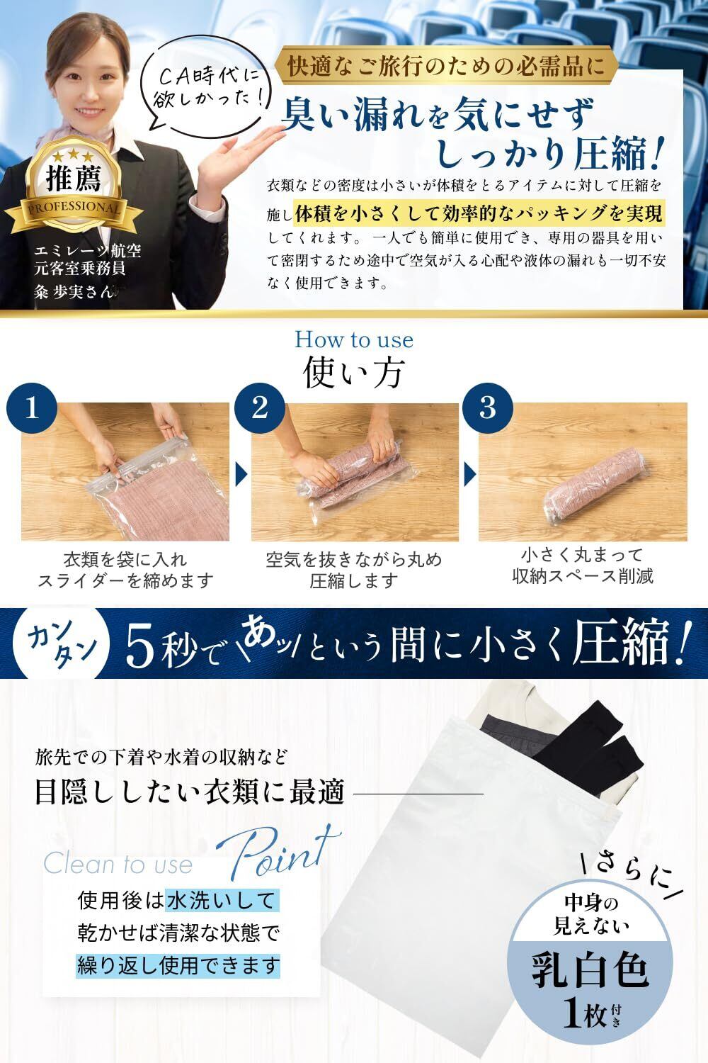 【抗菌防臭 中身が透けない下着専用袋付き 旅行で大活躍◎】 衣類圧縮袋 最大 70%圧縮 [国内防臭試験検査済み 簡単5秒で圧縮] 旅行・出張・衣替え 独自の 密閉素材