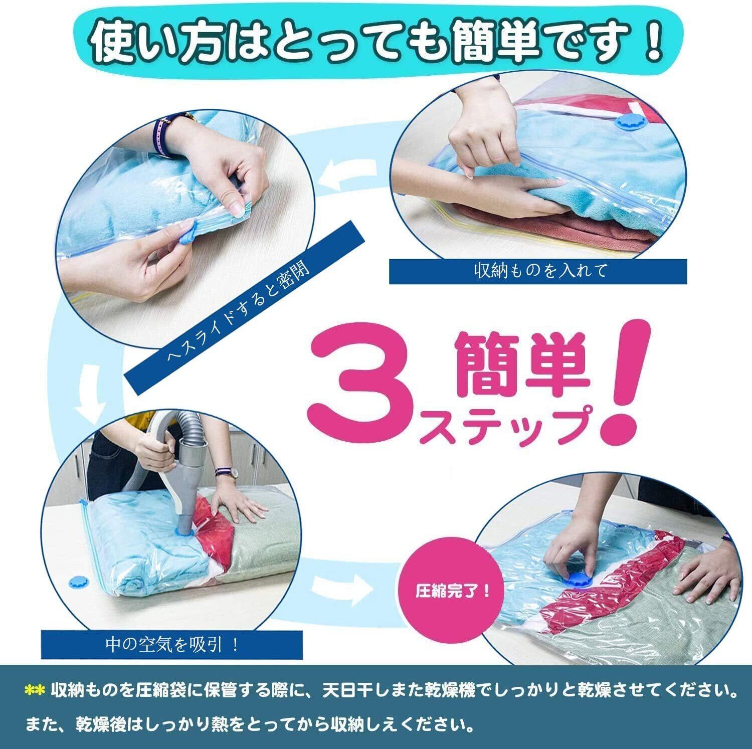 QH7 衣類圧縮袋6枚組【60 * 40cm】掃除機対応 , ダニ カビ対策 収納/引越し/衣替え/旅行用 真空パック…