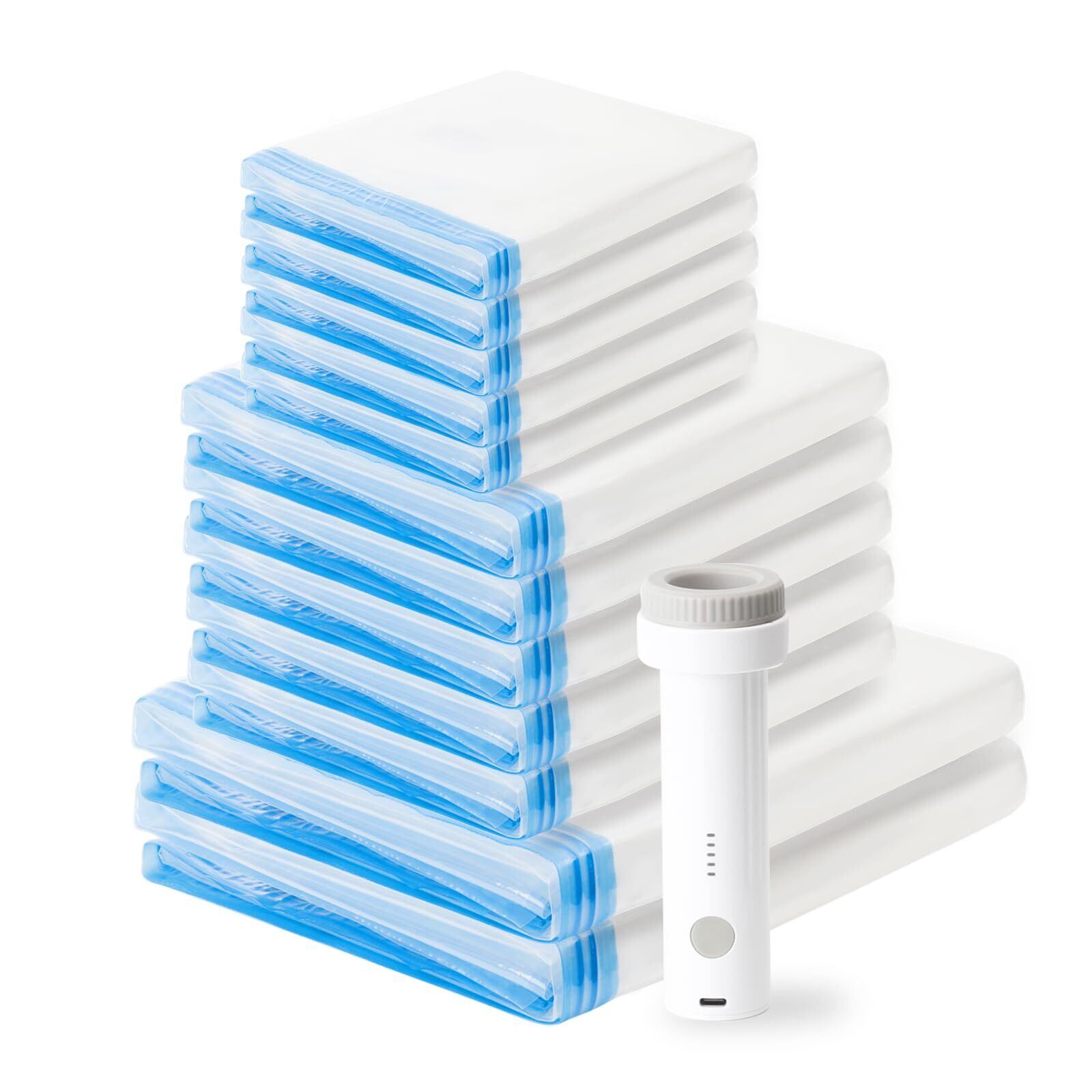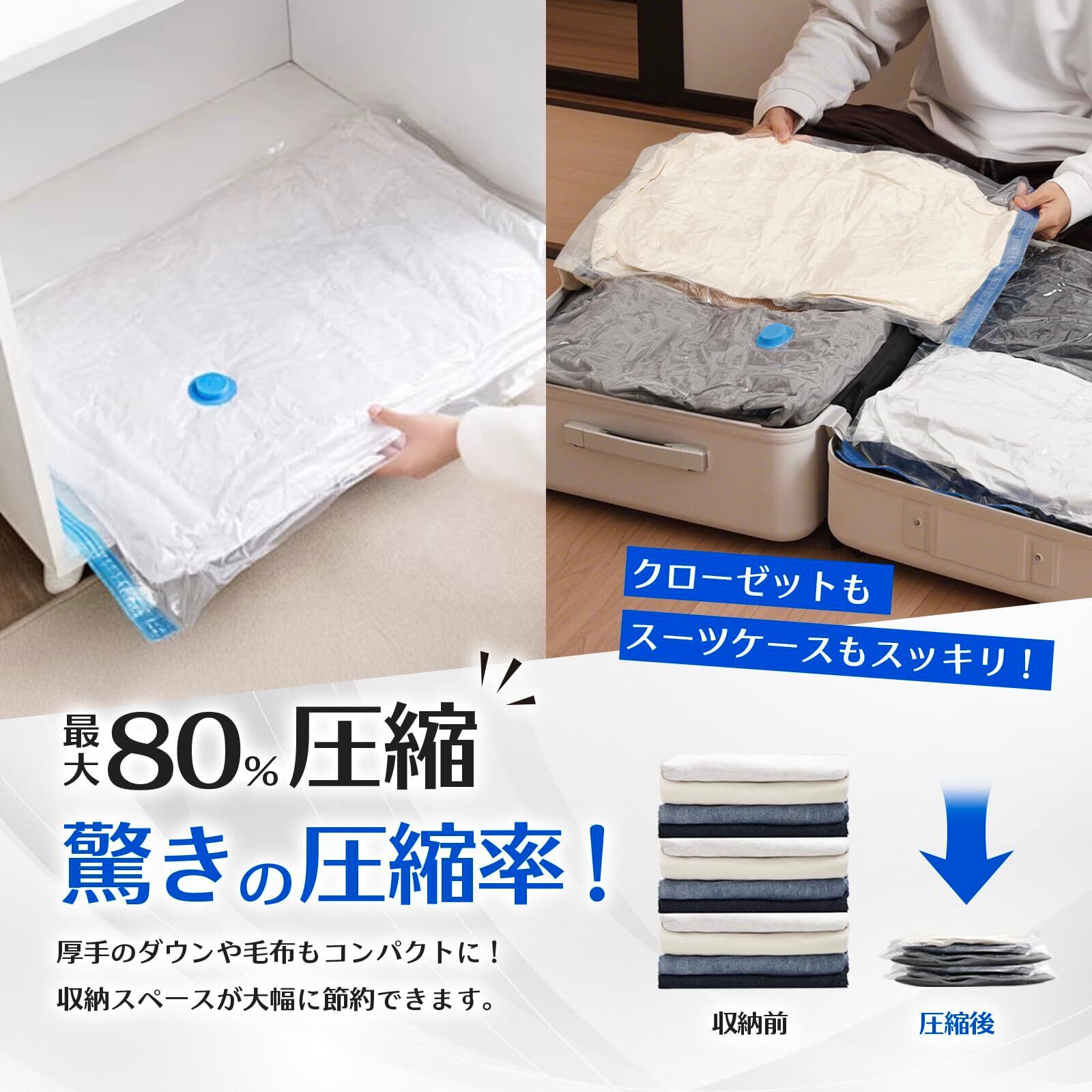 Wuzzon 布団圧縮袋 コードレス電動ポンプ付き 【12枚組/家庭用】80×100cm 2枚/ 50×70 cm 5枚/40×60cm 5枚 掃除機不要 衣類・旅行用 コードレス 布団 衣類 毛布 洋服 ふとん 特大サイズ 真空収納袋 高密封性 防湿 防塵 防臭 防カビ 圧縮パック ダニ対策 収納/引越し/衣替え/出張/旅行対応