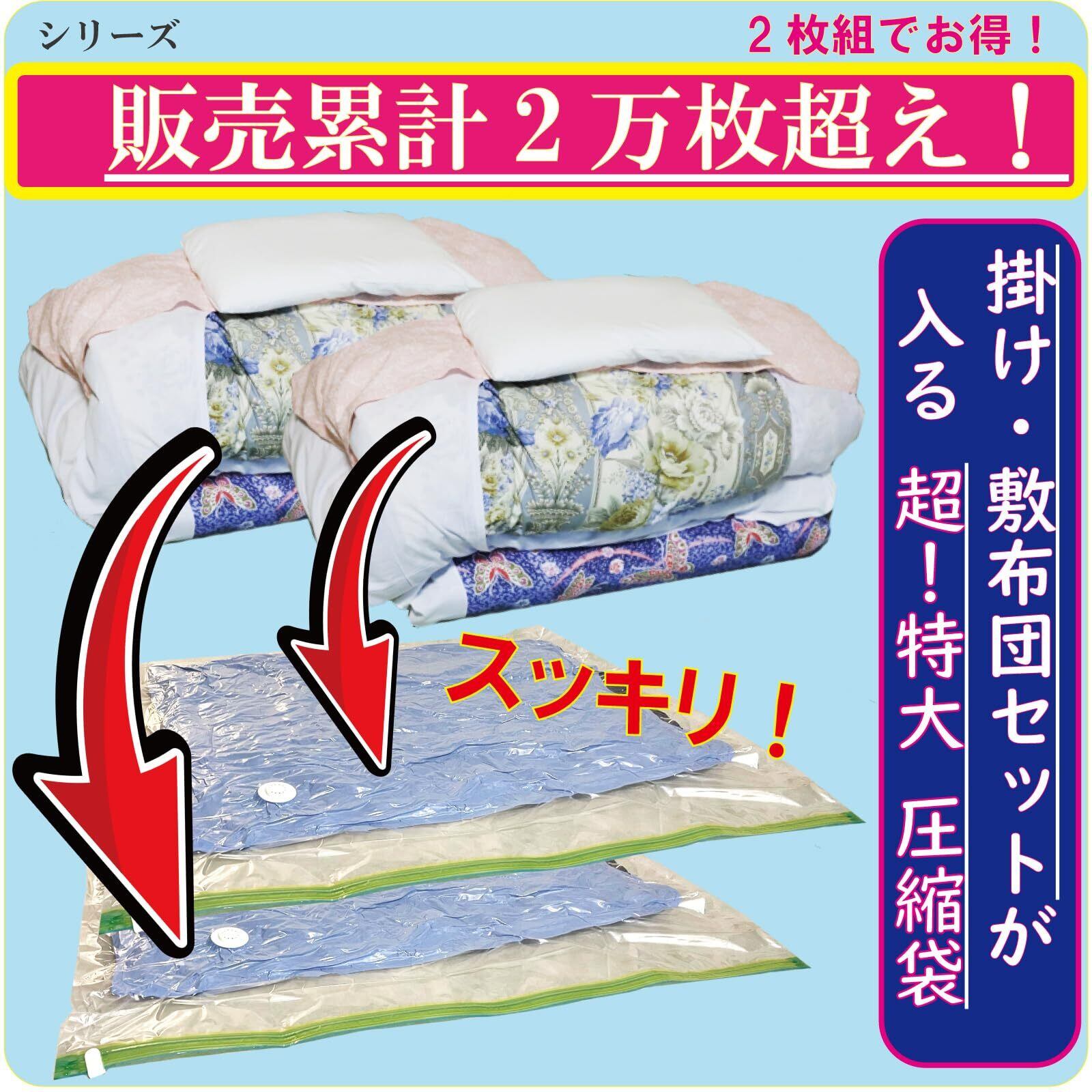 布団圧縮袋 特大 2枚組 掛け布団 敷布団 が入るビッグサイズ 圧縮袋 空気が戻らない スピードバルブ付き 圧縮がカンタン 二重ファスナー付で更に空気が抜けにくい
