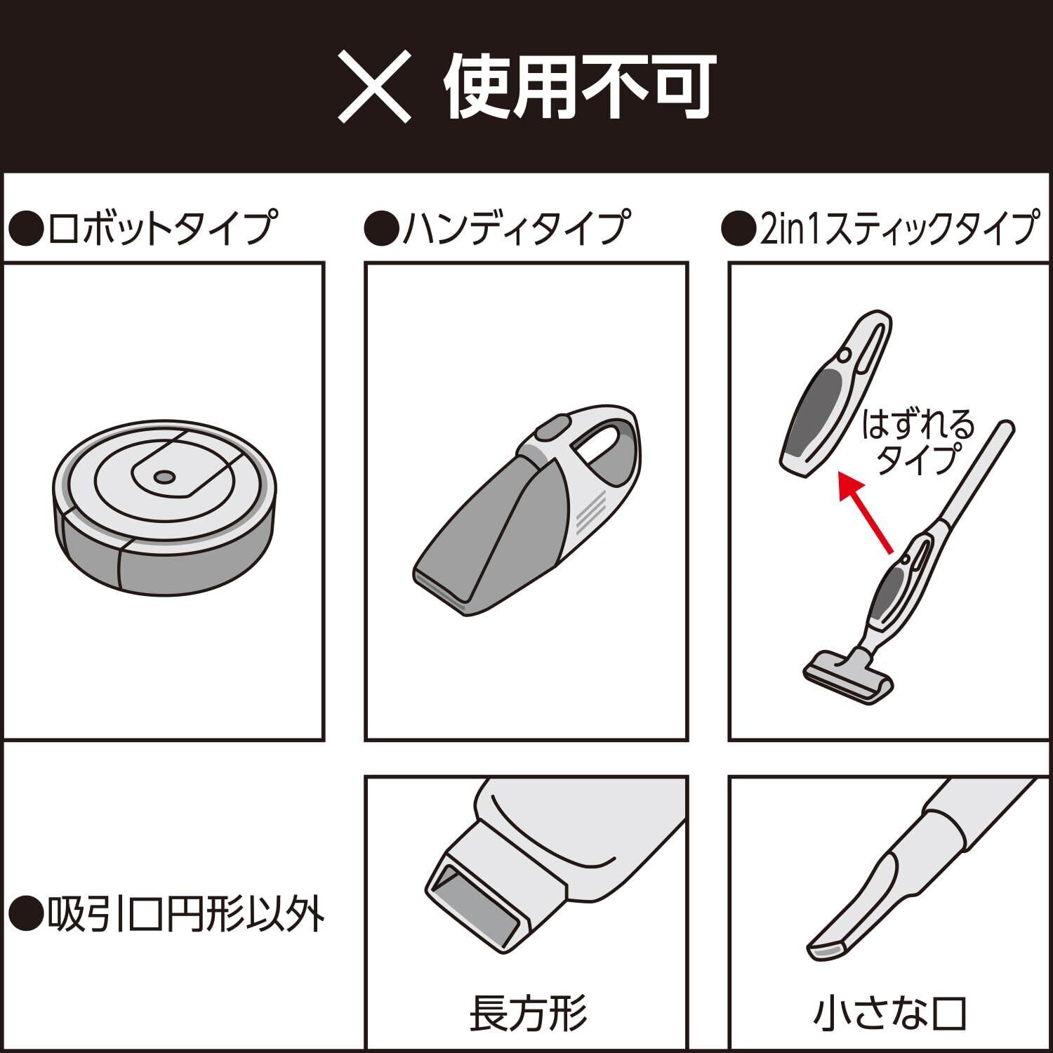 【スピード圧縮可能な専用アダプタ付き】専用アダプタがバルブにぴったり密着し、空気モレを防ぎながらスピーディーに圧縮。ストレスなく圧縮作業が完了します。スティックタイプ、キャニスタータイプ、吸引口円形タイプの掃除機に対応しています。