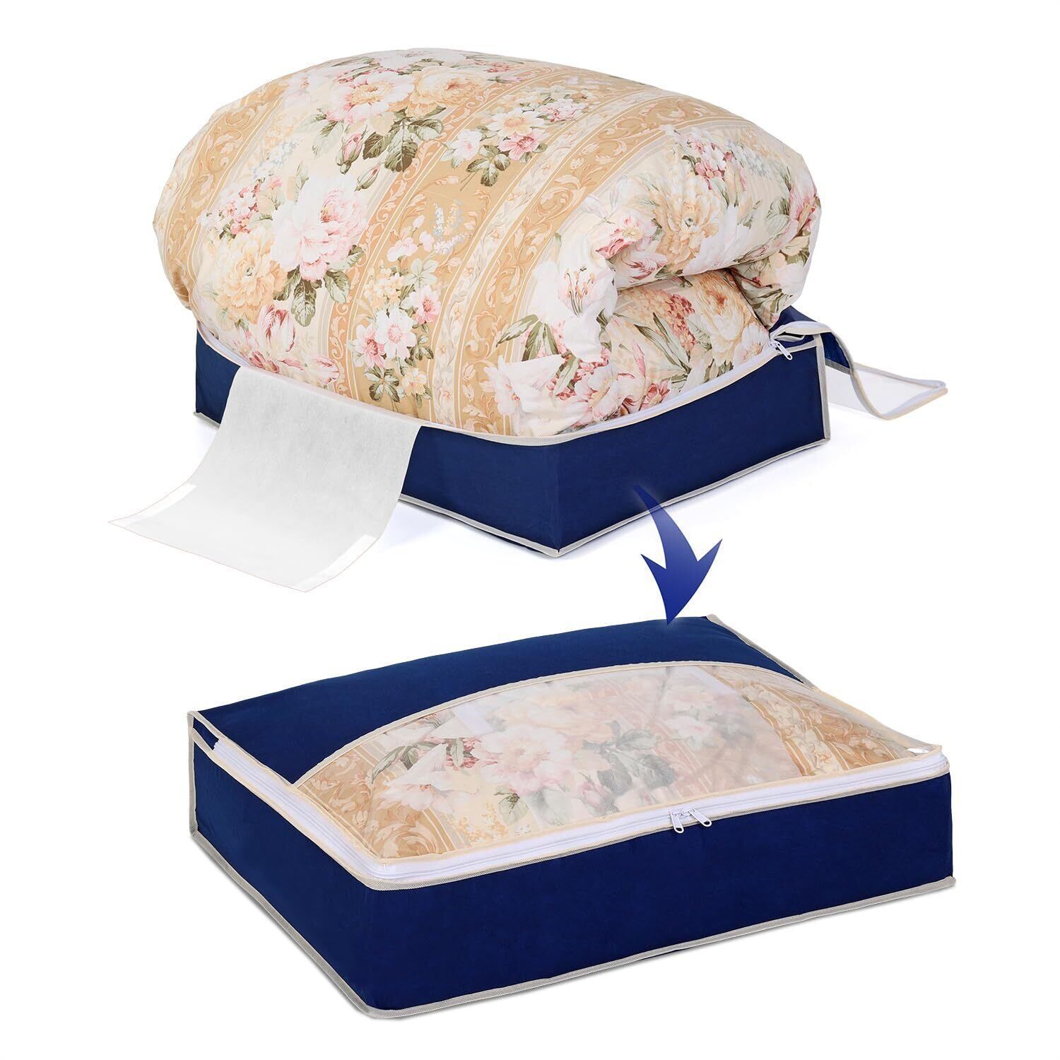 アストロ 羽毛布団収納袋 シングル 軽圧縮 押さえベルトでとめるだけでコンパクト収納 通気性の良い不織布がホコリなどの汚れをガード 透明窓付き 布団収納 布団袋 収納ケース 圧縮袋 薄型 ネイビー 131-29
