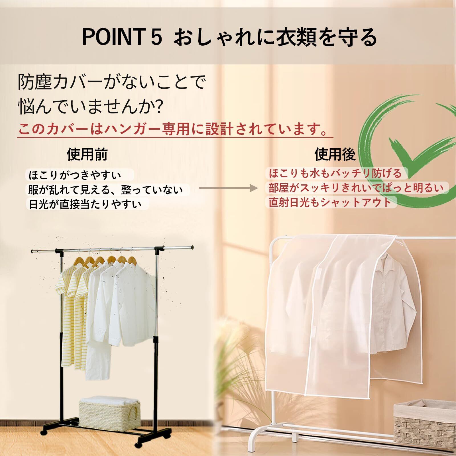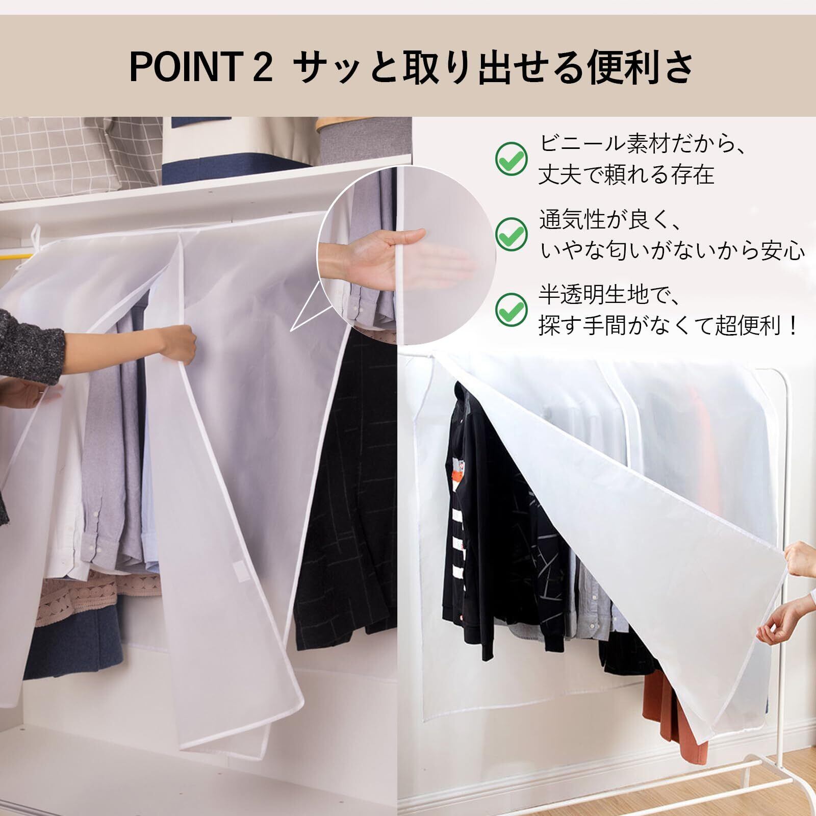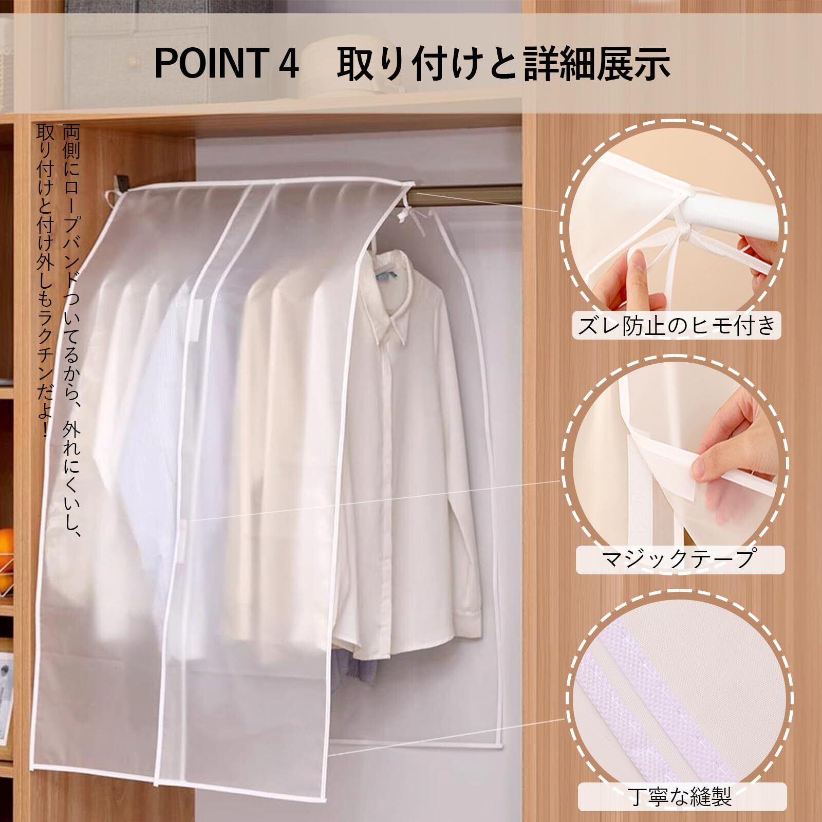 【簡単取り付け】半透明だから、何が入っているかすぐにわかるので、探す手間がなくて超便利。マジックテープにより、カバーからの取り出しがスムーズで、毎日使いやすい!各衣類カバーには2組のマジックテープが付いており、位置を自分で調整できます。