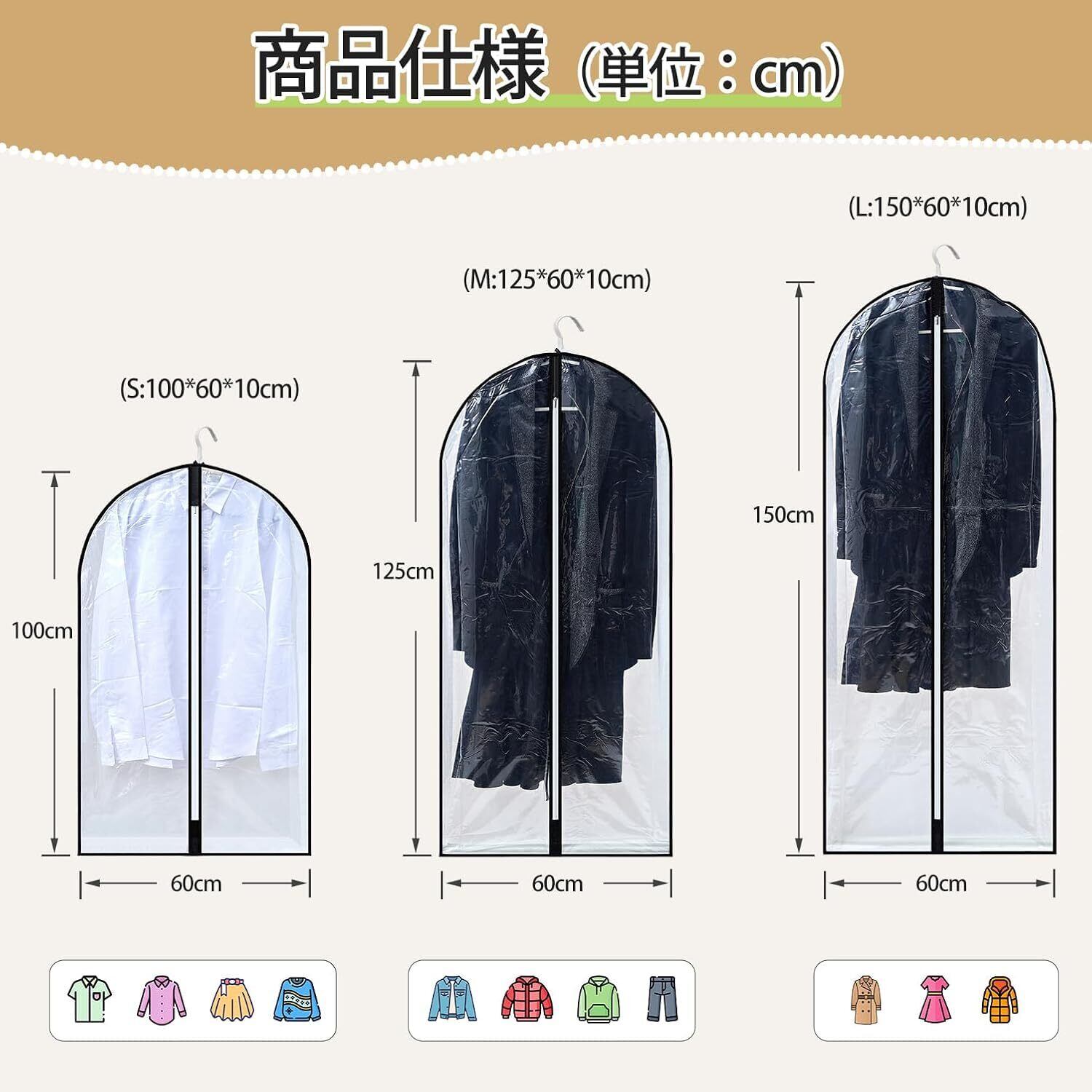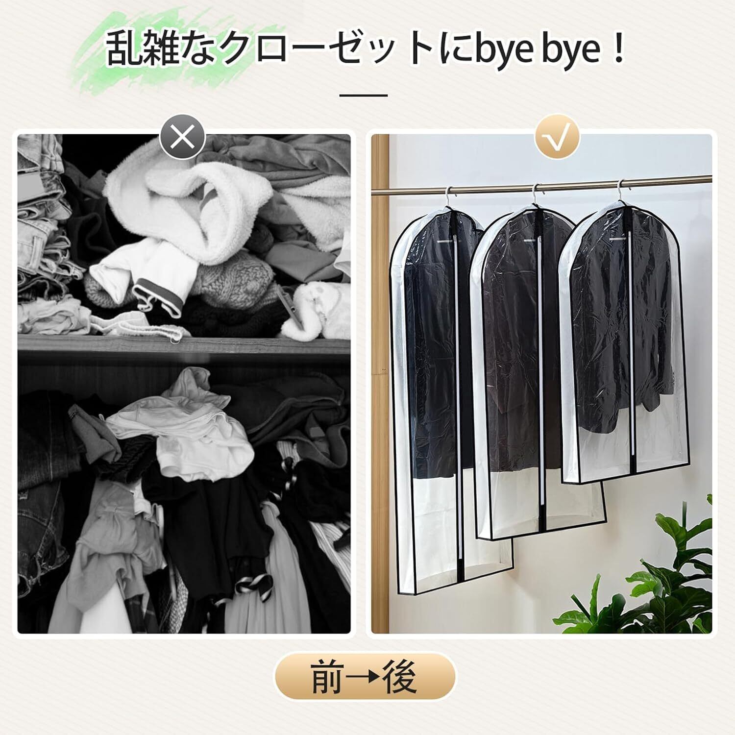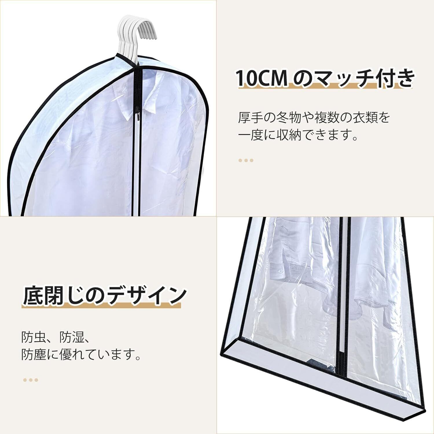 【可視窓付き】前面は完全に透明で、防塵カバーを開けずに探したい衣類を確認できます。【マチ付きシワになりにくい】マチを設けた立体的なデザインで、衣類を入れても圧迫されずシワになりにくいです。
