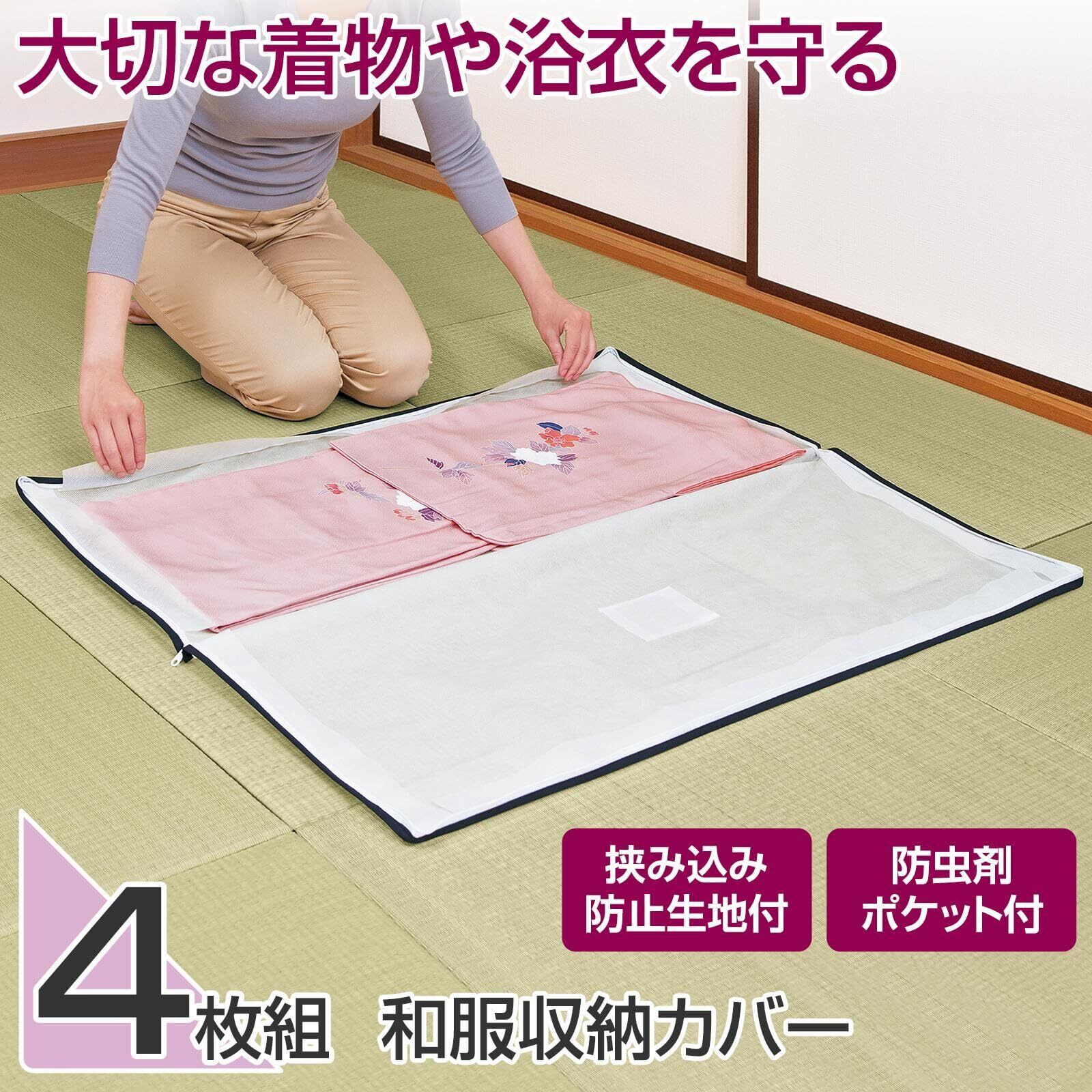コモライフ 和服収納カバー 4枚組 和服 収納 着物 浴衣 保管袋 収納袋 3方開き 不織布 ポケット付 通気性